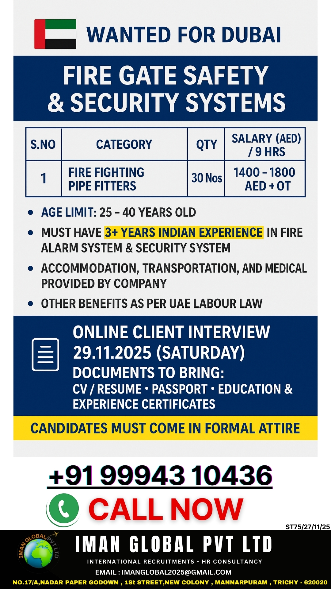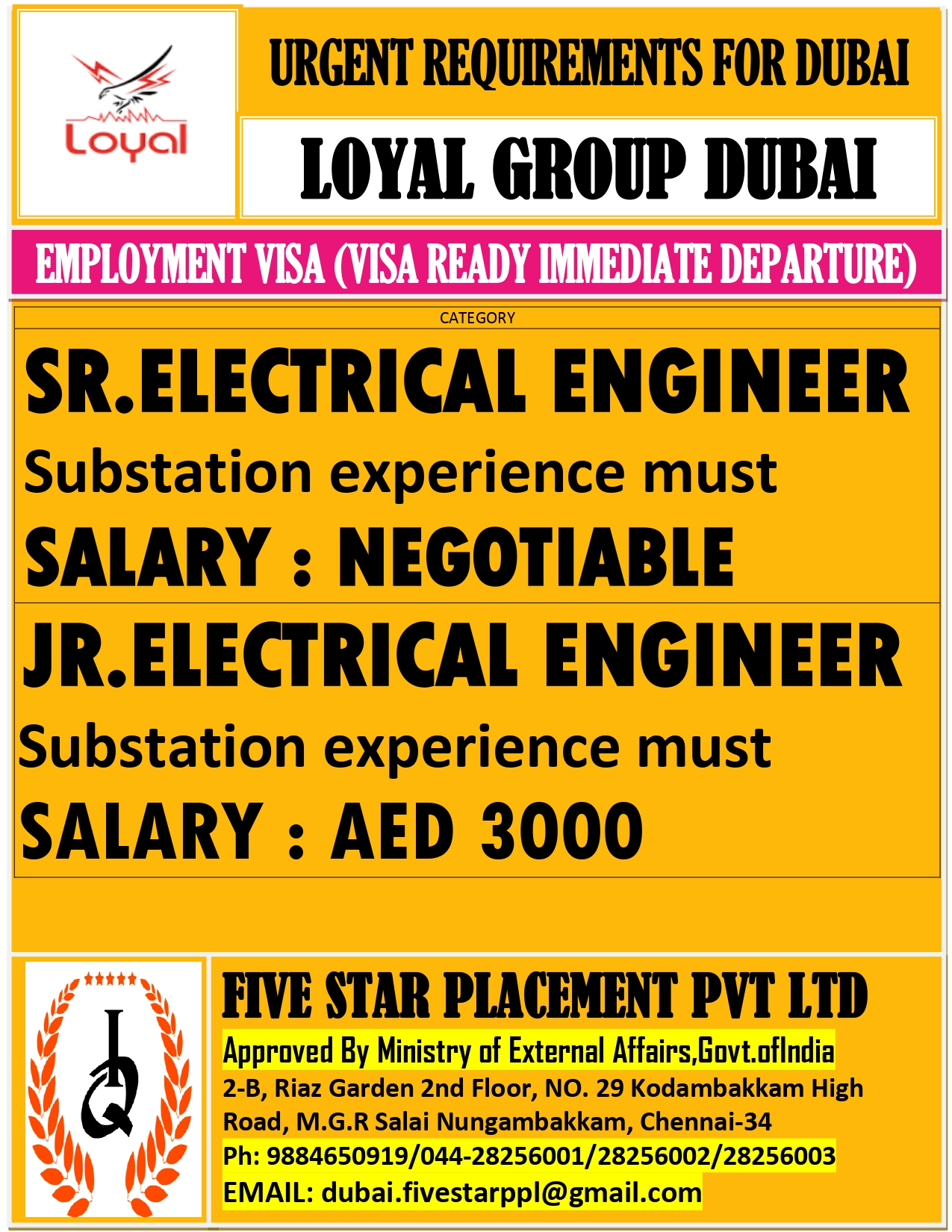 URGENT REQUIREMENT FOR DUBAI Interested candidates can share your cv along with all credentials below Mail Id EMAIL:[email protected] CONTACT NO : 9884650919/044-28256001/28256002/28256003