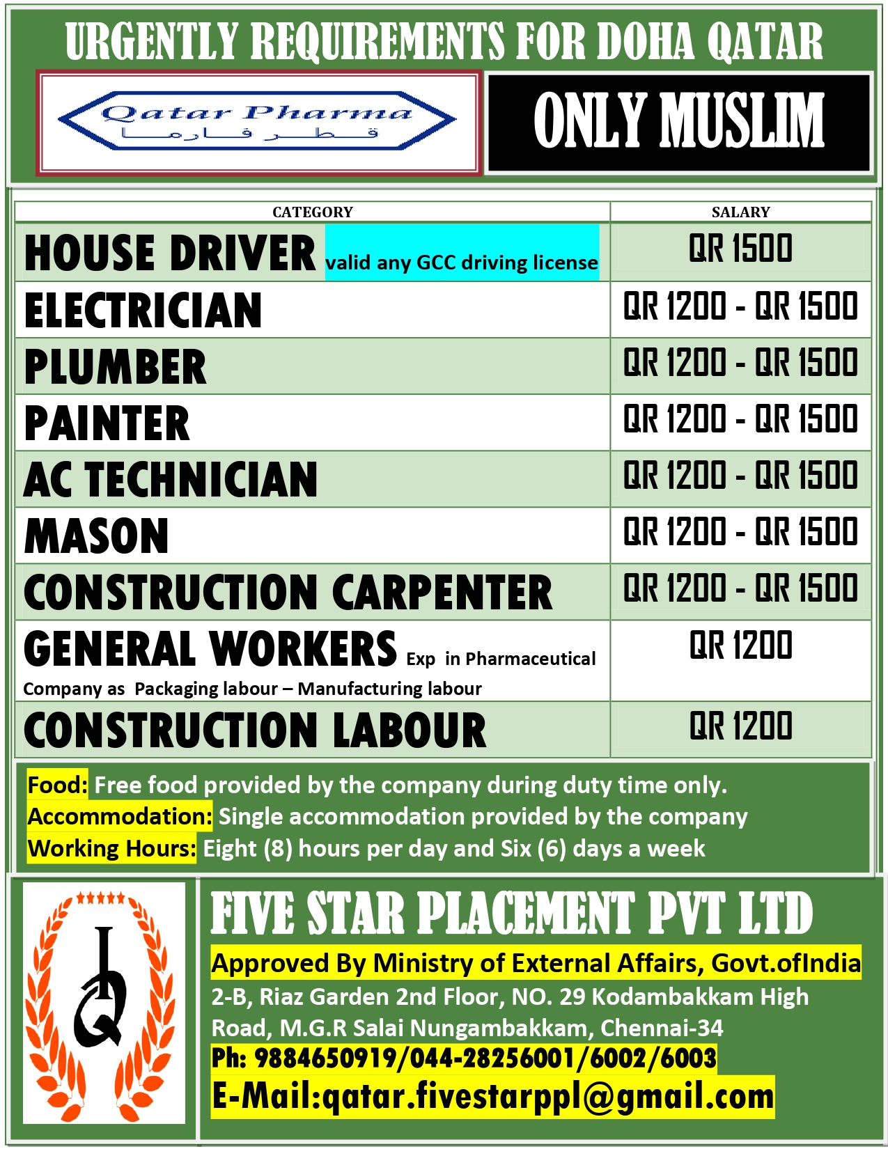 URGENT REQUIREMENT FOR DOHA QATAR Interested candidates can share your cv along with all credentials below Mail Id EMAIL:[email protected] CONTACT NO : 9884650919/044-28256001/28256002/28256003