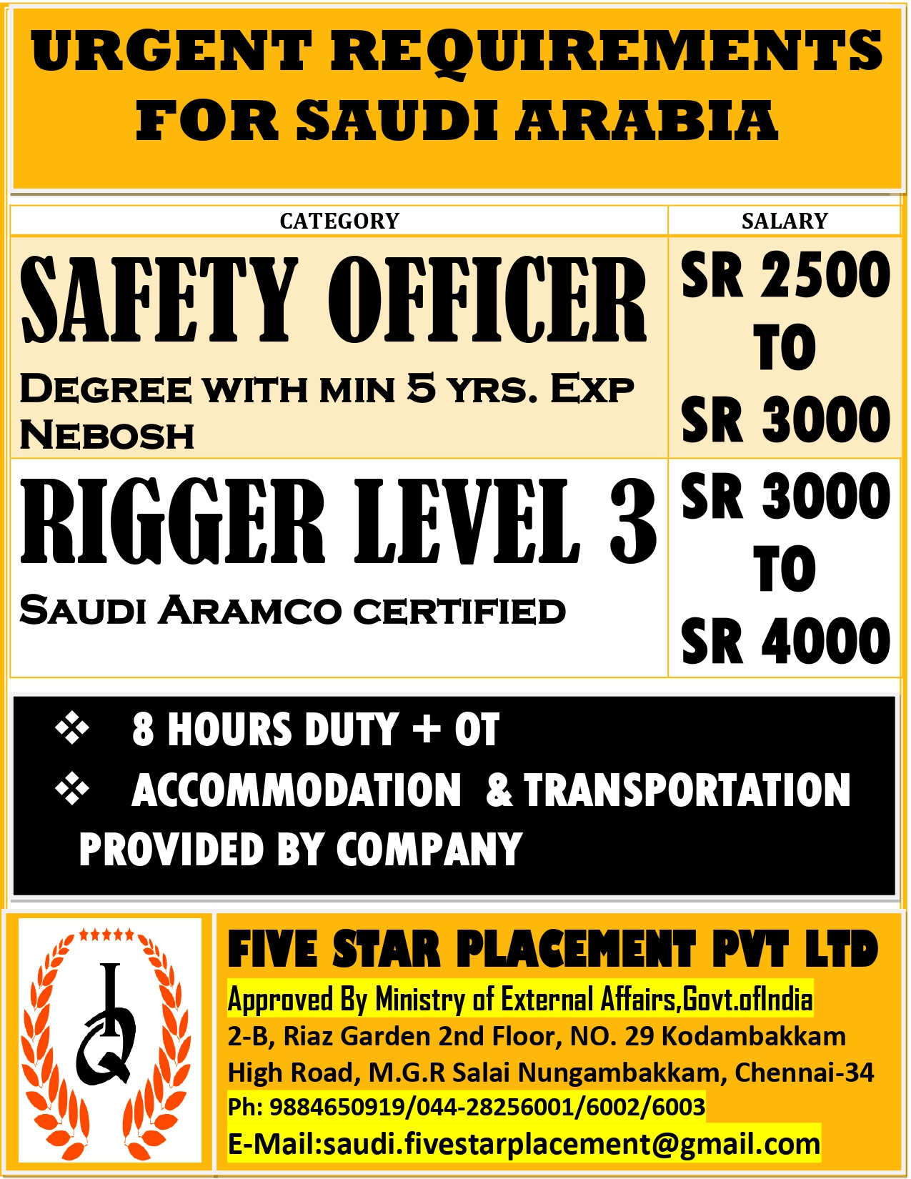 URGENT REQUIREMENT FOR SAUDI ARABIA Interested candidates can share your cv along with all credentials below Mail Id EMAIL:[email protected] CONTACT NO : 9884650919/044-28256001/28256002/28256003