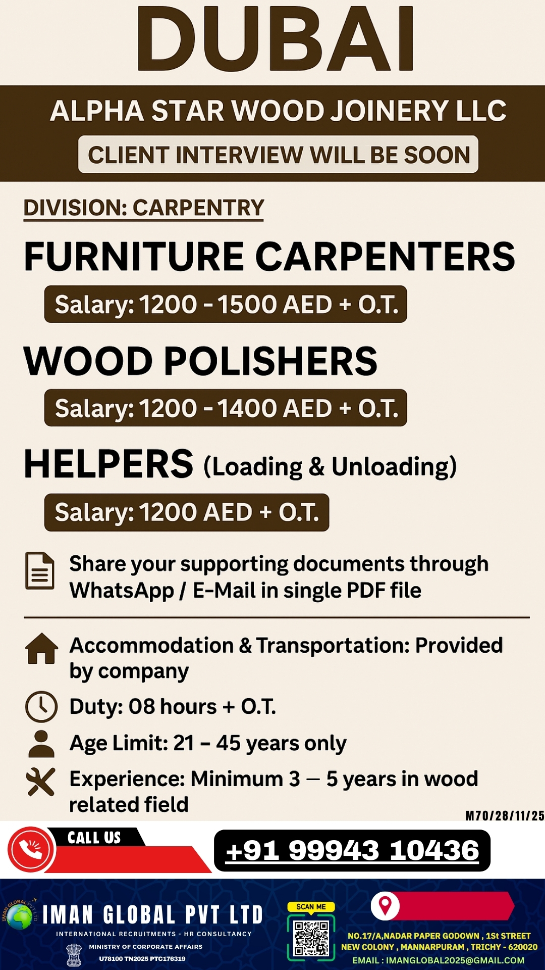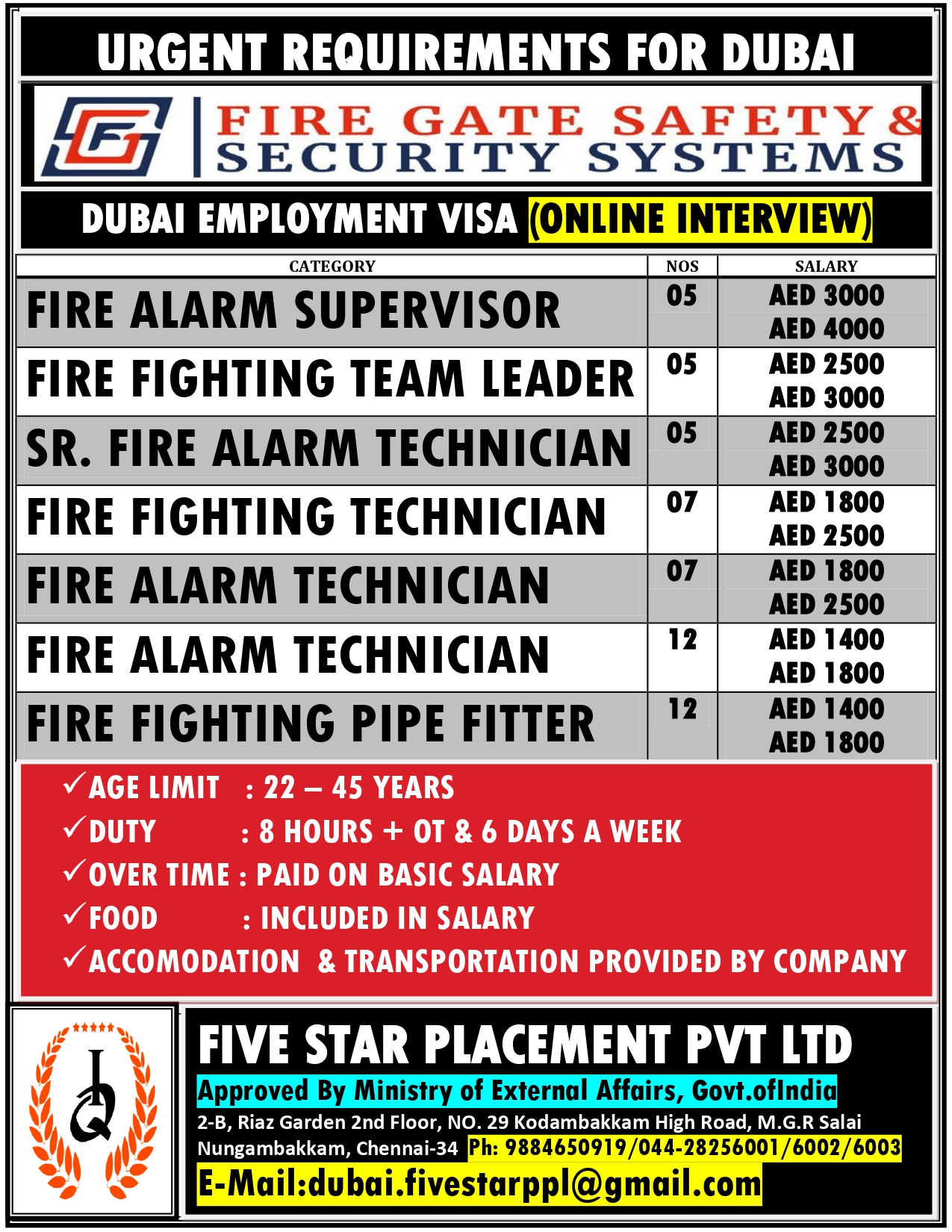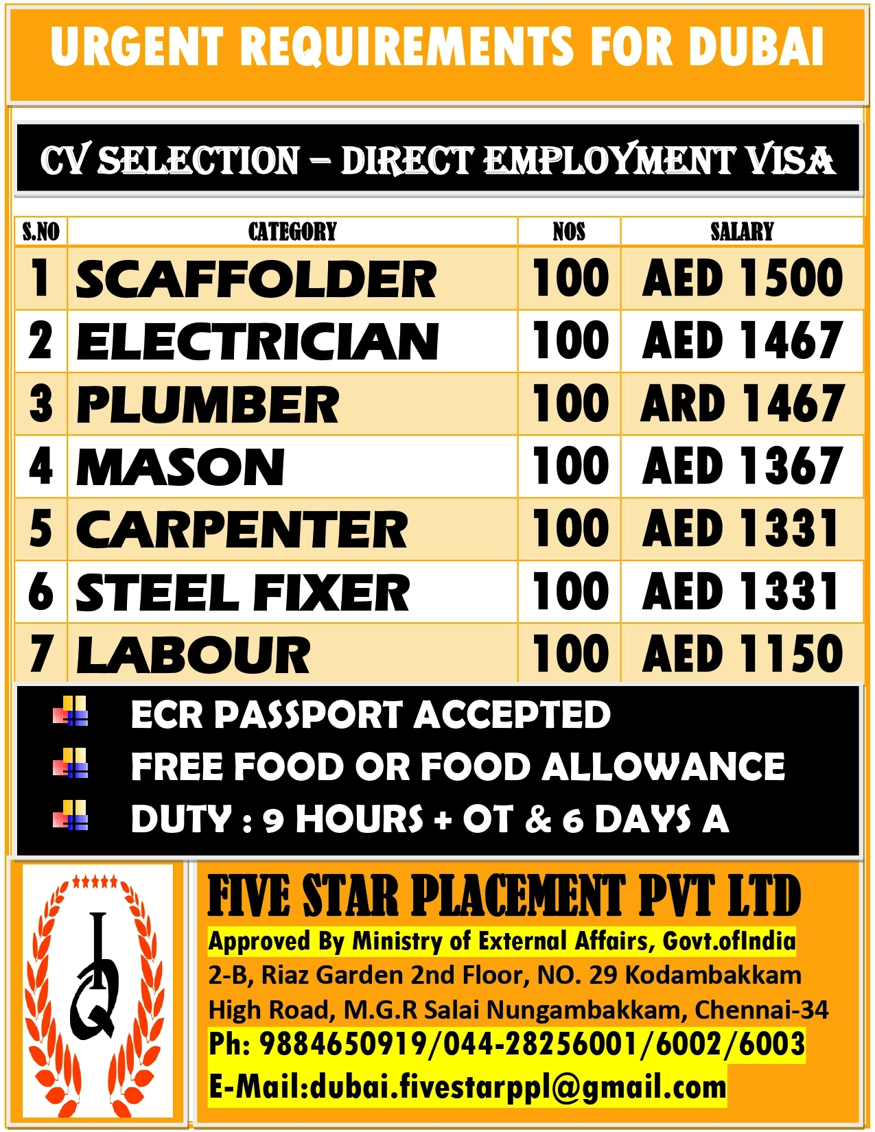 URGENT REQUIREMENT FOR DUBAI Interested candidates can share your cv along with all credentials below Mail Id EMAIL:[email protected] CONTACT NO : 9884650919/044-28256001/28256002/28256003