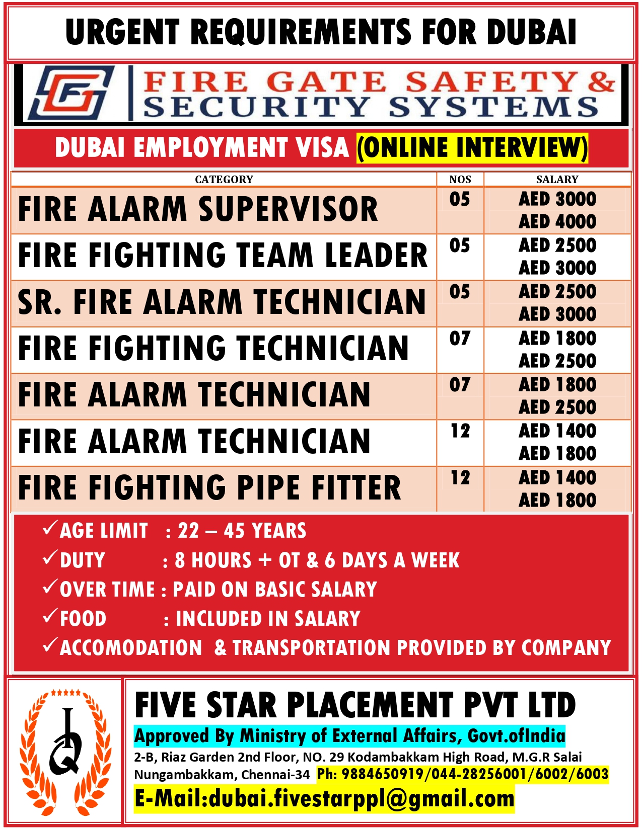 URGENT REQUIREMENT FOR DUBAI Interested candidates can share your cv along with all credentials below Mail Id EMAIL:[email protected] CONTACT NO : 9884650919/044-28256001/28256002/28256003