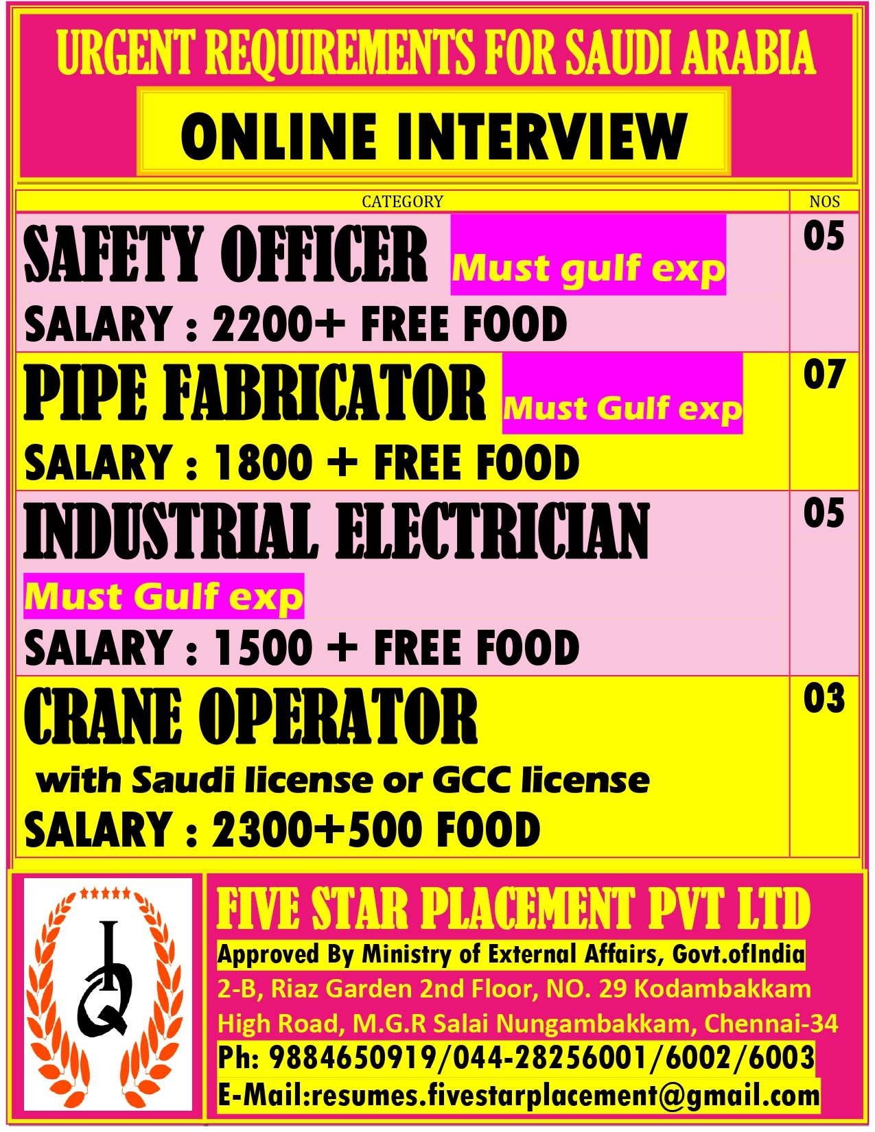 FREE REQUIREMENT LONG TERM PROJECTSAUDI – LEADING SUBSTATION PROJECTDIRECT CLIENT INTERVIEW IN CHENNAI @ 06/12/2025 to 07/12/2025ELECTRICAL TECHNICIAN DIRECT CLIENT INTERVIEW IN CHENNAI @ 08/12/2025CONTACT -7305064086APPLY NOW>>> [email protected] – 8000…