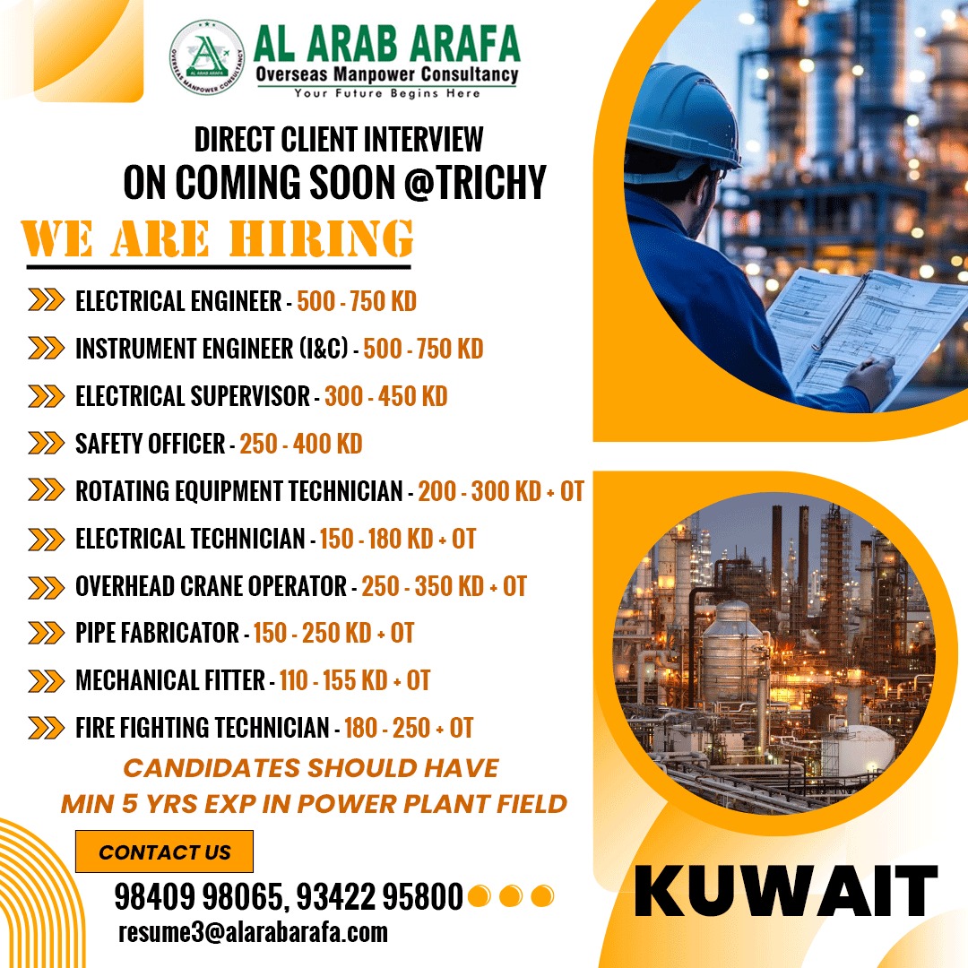 URGENTLY REQUIRED FOR SAUDI ARABIA POSITION:STEEL STRUCTURAL FABRICATORSSALARY : 2200 – 2500 +500 SARREQUIREMENTS: Measure, cut, bend, and shape metal materials using fabrication tools such as grinders, cutters, gas torches,…
