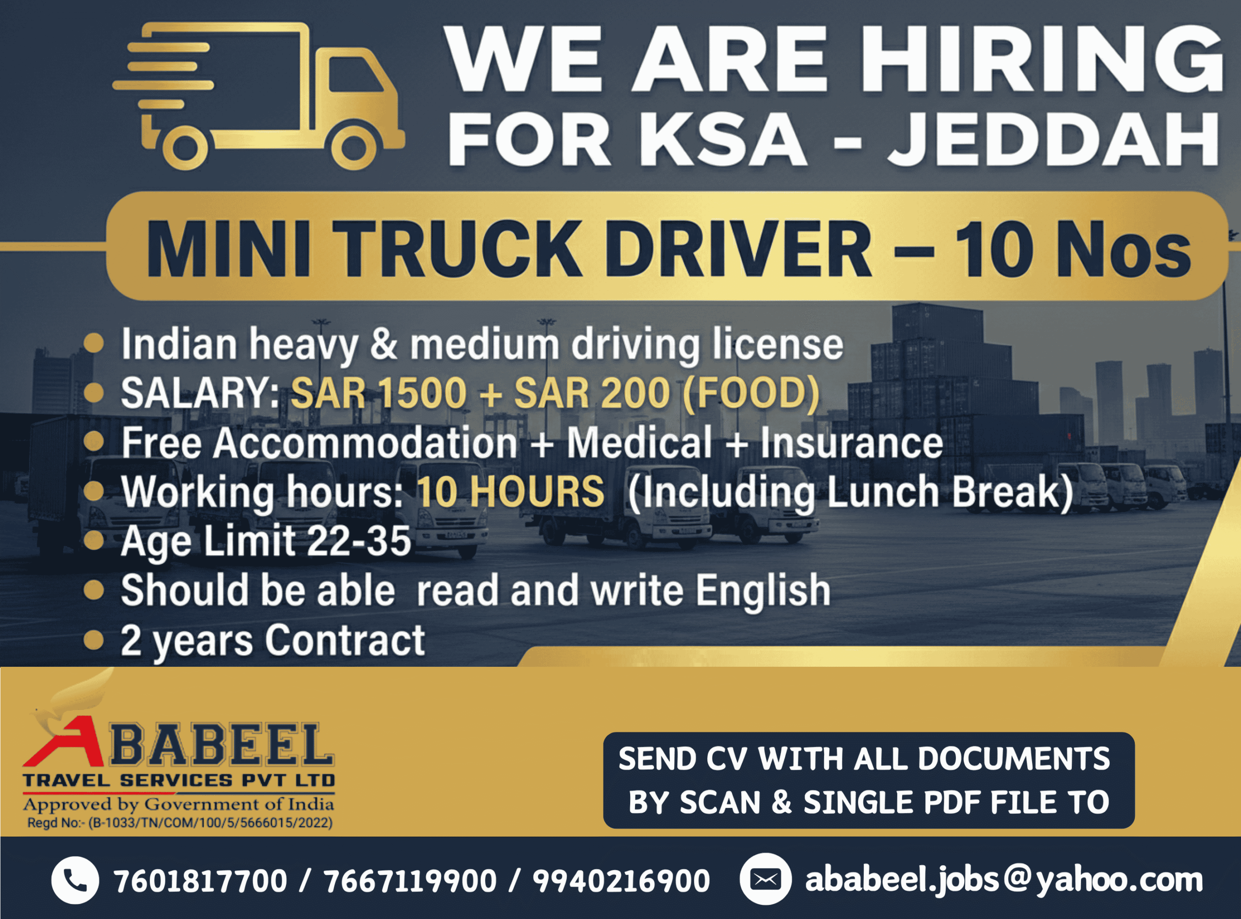 ⚠️ Disclaimer: gccwalkin.com is not a recruitment agency. We do not charge any fees for job information. We only share job details collected from official sources such as company websites, newspapers, and social media. Job seekers are advised to verify the authenticity of the job and company before applying.