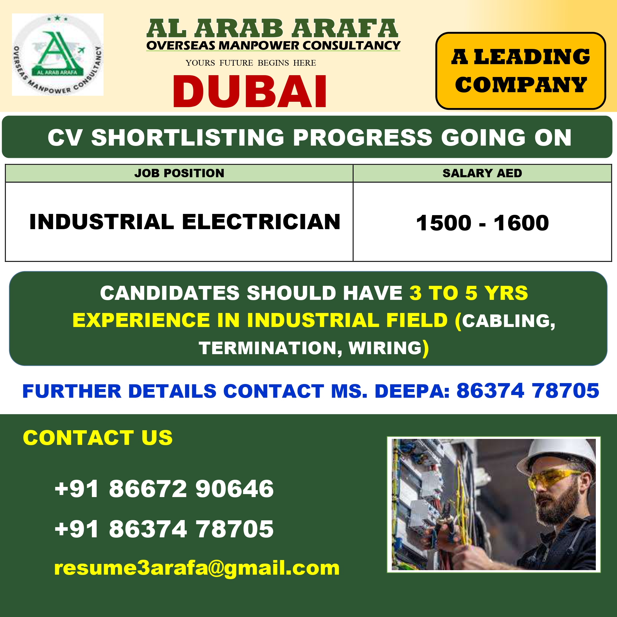 DETAILS KINDLY CONTACT MS DEEPA: 8637478705