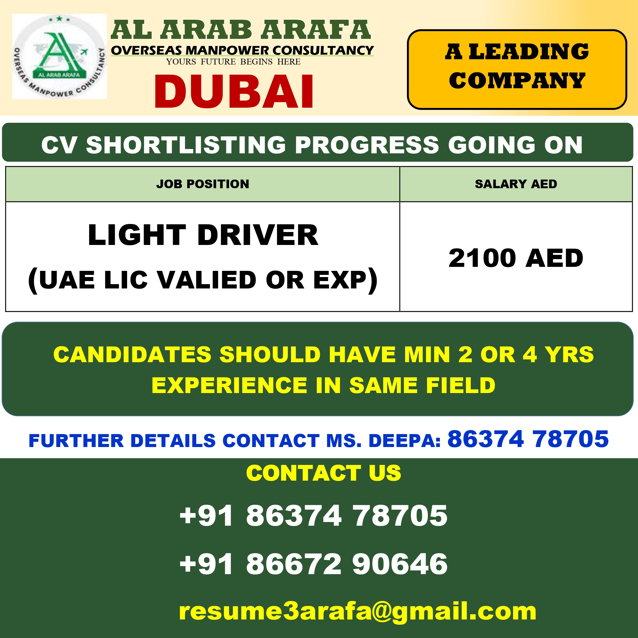 FURTHER DETAILS KINDLY CONTACT MS.DEEPA: 8637478705