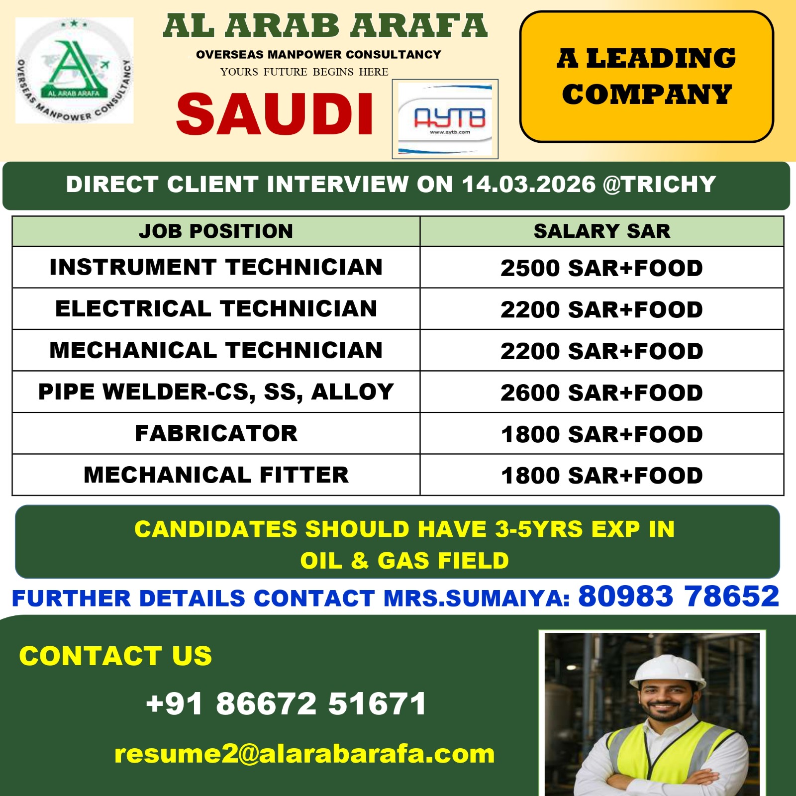 ⚠️ Disclaimer: gccwalkin.com is not a recruitment agency. We do not charge any fees for job information. We only share job details collected from official sources such as company websites, newspapers, and social media. Job seekers are advised to verify the authenticity of the job and company before applying.