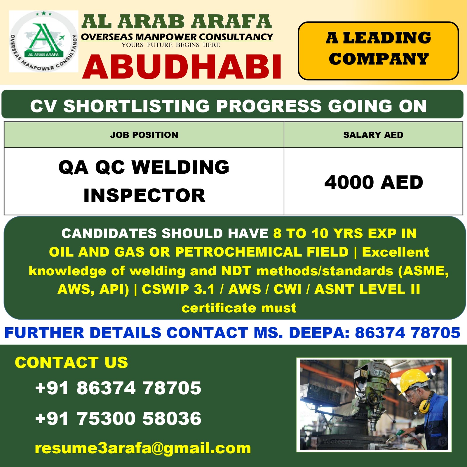 Daily Job Alert Join the Whatsapp Channel Join Now FURTHER DETAILS KINDLY CONTACT MS. JENIFER : 7530058036 [email protected] Post navigation AL ARAB ARAFA AL ARAB ARAFA OVERSEAS MANPOWER CONSULTANCY