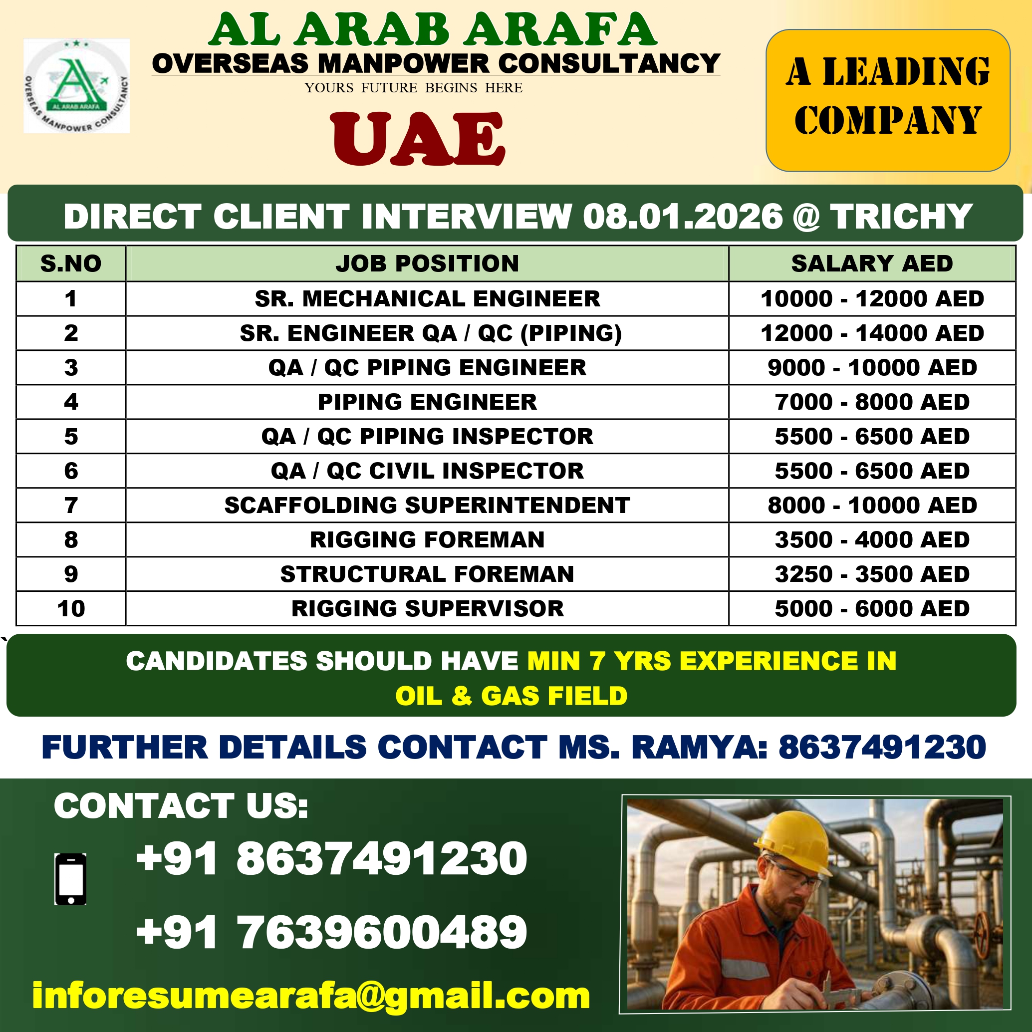 FURTHER DETAILS KINDLY CONTACT MS.RAMYA: 8637491230