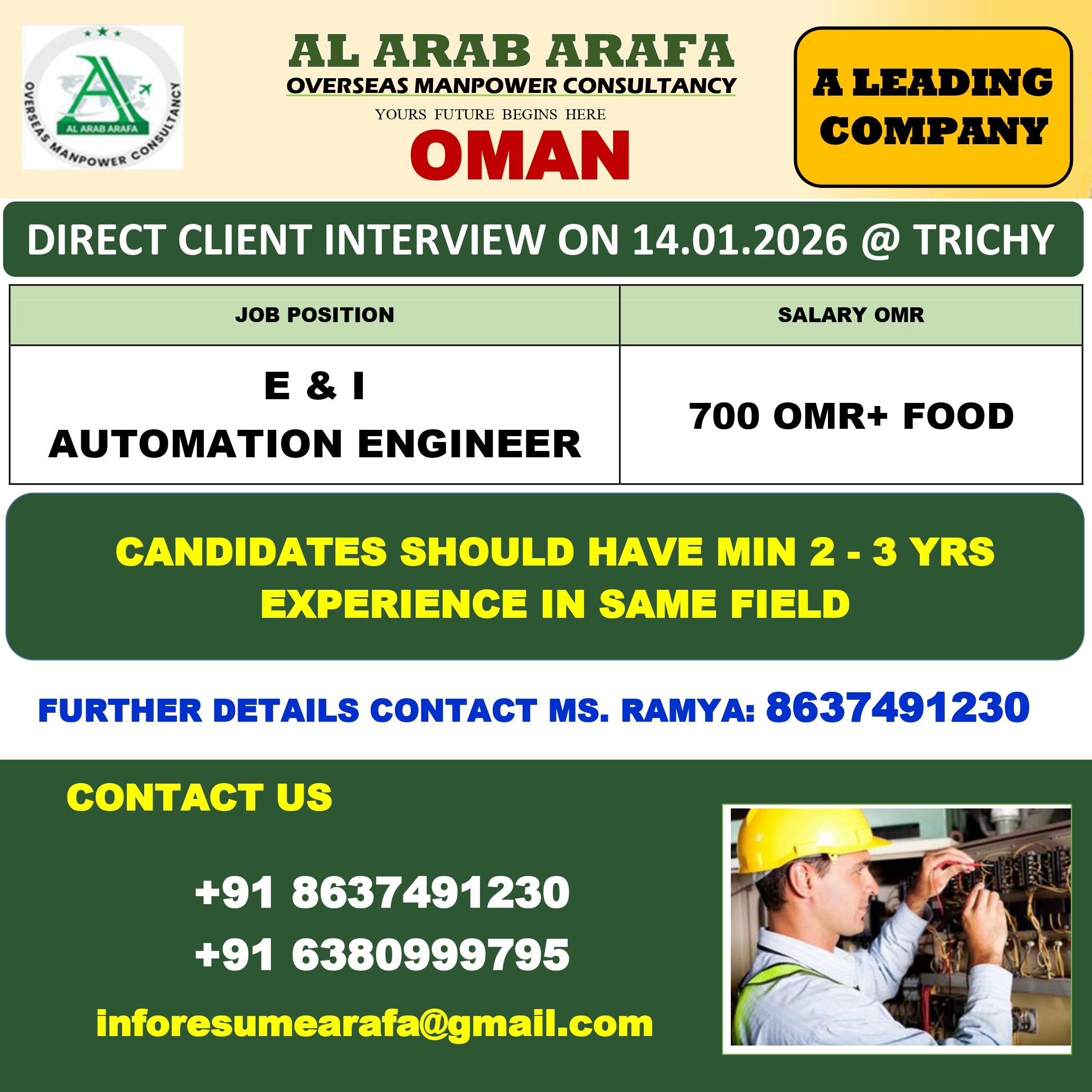 FURTHER DETAILS KINDLY CONTACT MS.RAMYA: 8637491230
