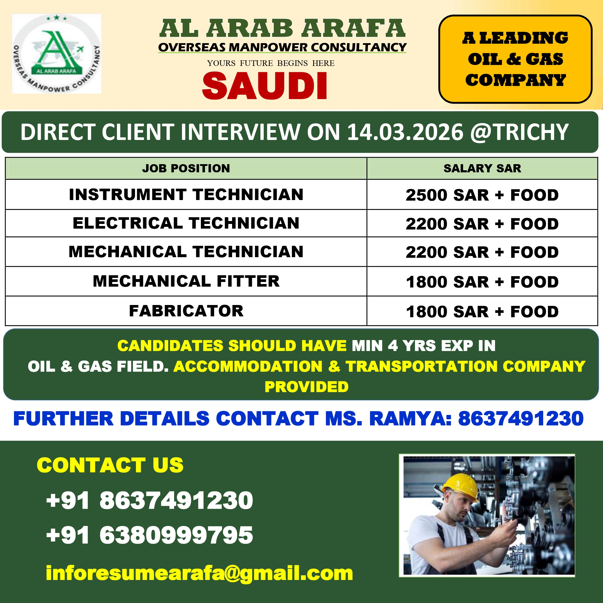 FURTHER DETAILS KINDLY CONTACT MS.RAMYA: 8637491230
