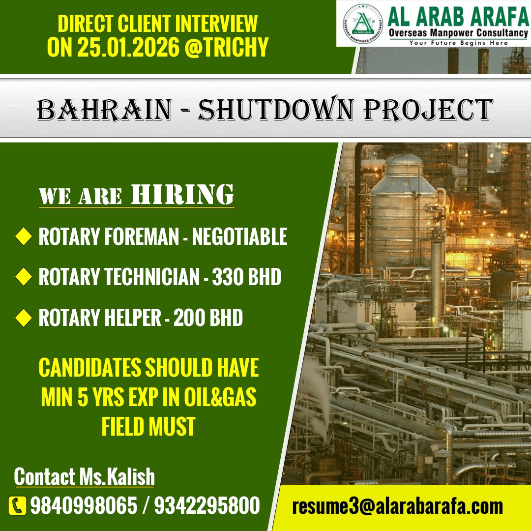 GREETINGS FROM RK GULF TRAVELS, BHILAI. HIRING FOR A GAS ARABIA COMPANY -FOR THEIR TUWAIQ STEEL – KSA DIRECT CV SELECTION WITH ZOOM INTERVIEW SHORTLY IN JANURY-2026. CANDIDATES SHOULD HAVE…