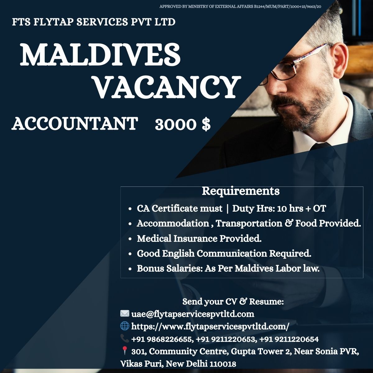 Urgent Hiring for Maldives – Accountant FTS Flytap Services Pvt. Ltd. invites applications from qualified and experienced accounting professionals for a premium overseas opportunity in the Maldives. This position offers…