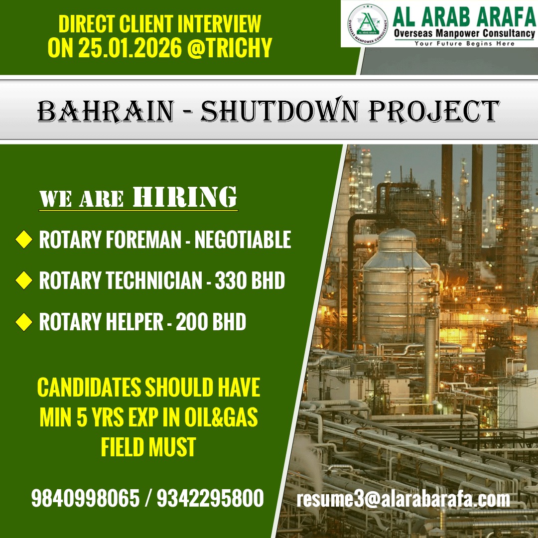 GREETINGS FROM RK GULF TRAVELS, BHILAI. HIRING FOR A LEADING PANEL MANUFACTURING COMPANY – ATHENS (GREECE) CV SELECTION WITH ZOOM INTERVIEW ON DECEMBER -2025 IN OUR OFFICE. CANDIDATES SHOULD HAVE…