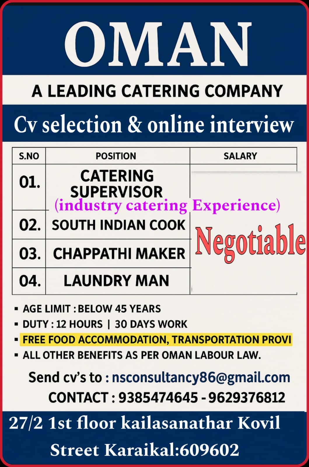 For more details: please call: 9620992294-8277795307-9845300838 Please like & join us: https://www.facebook.com/welcometosaad https://www.instagram.com/saddconsultancy_jobs/ https://t.me/saadgulfjobshttps://www.linkedin.com/in/abroadjobshttps://twitter.com/saadgulfjobs