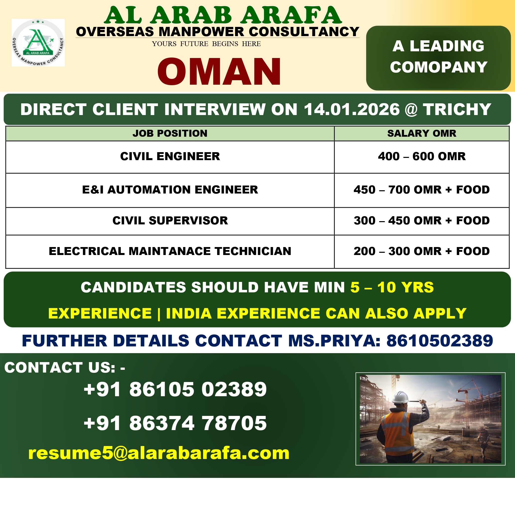 FURTHER DETAILS KINDLY CONTACT MS.PRIYA : [email protected]