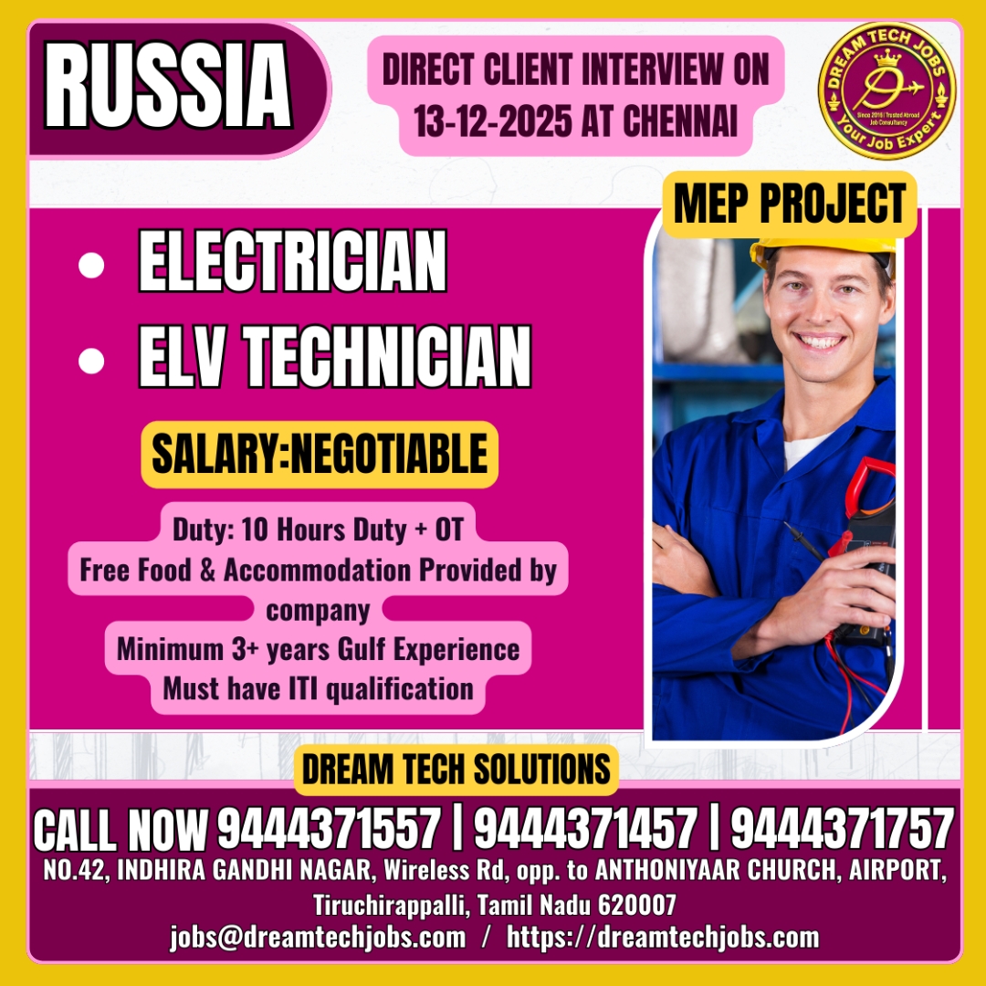 GREETINGS FROM RK GULF TRAVELS, BHILAI. HIRING FOR A LEADING OIL & GAS COMPANY (YAMATA) – RUSSIA. F2F CLIENT INTERVIEW ON DECEMBER-2025 IN MUMBAI. CANDIDATES SHOULD HAVE MINIMUM 5-6 YEARS…