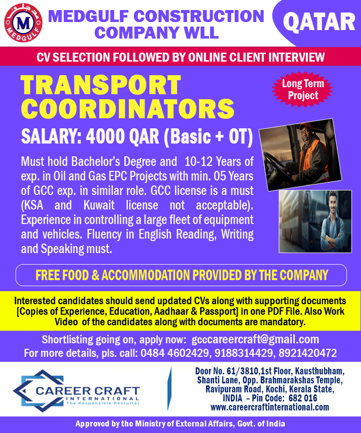 GREETINGS FROM RK GULF TRAVELS, BHILAI. HIRING FOR A LEADING COMPANY FOR THEIR AIRPORT PROJECTS – KSA. CV SELECTION WITH ZOOM INTERVIEW ON DECEMBER -2025 IN OUR OFFICE. CANDIDATES SHOULD…