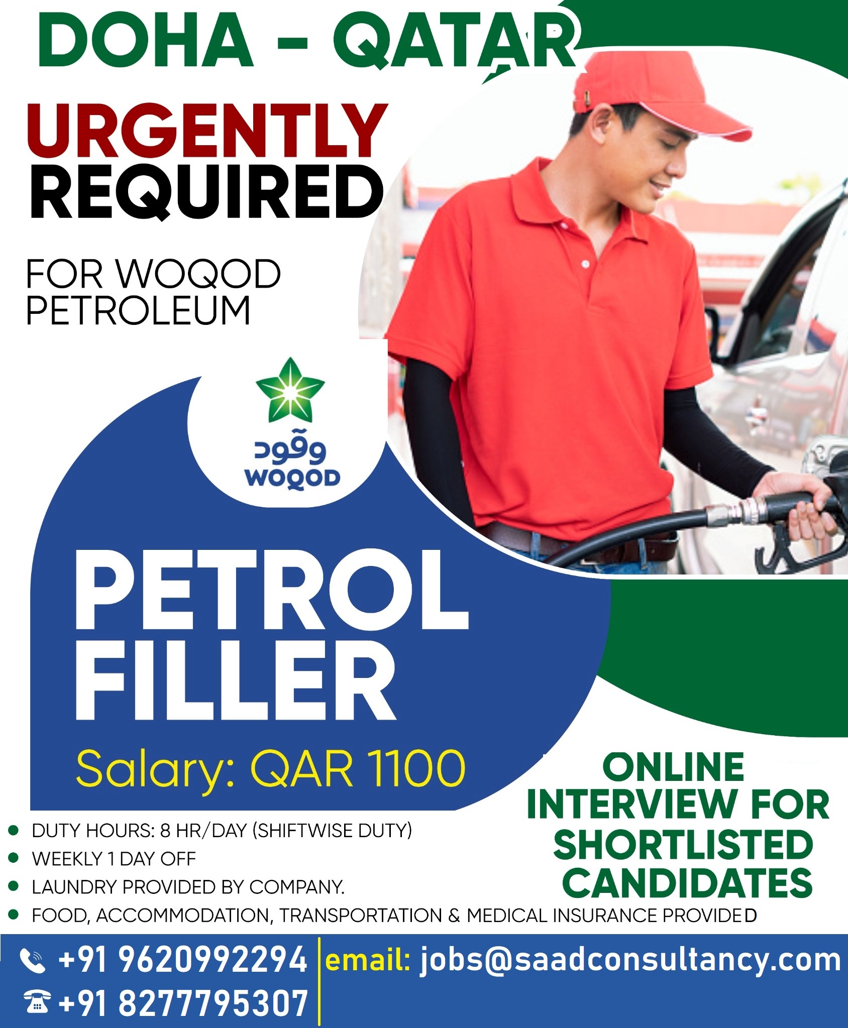For more details: please call: 9620992294-8277795307-9845300838 Please like & join us: https://www.facebook.com/welcometosaad https://www.instagram.com/saddconsultancy_jobs/ https://t.me/saadgulfjobshttps://www.linkedin.com/in/abroadjobshttps://twitter.com/saadgulfjobs