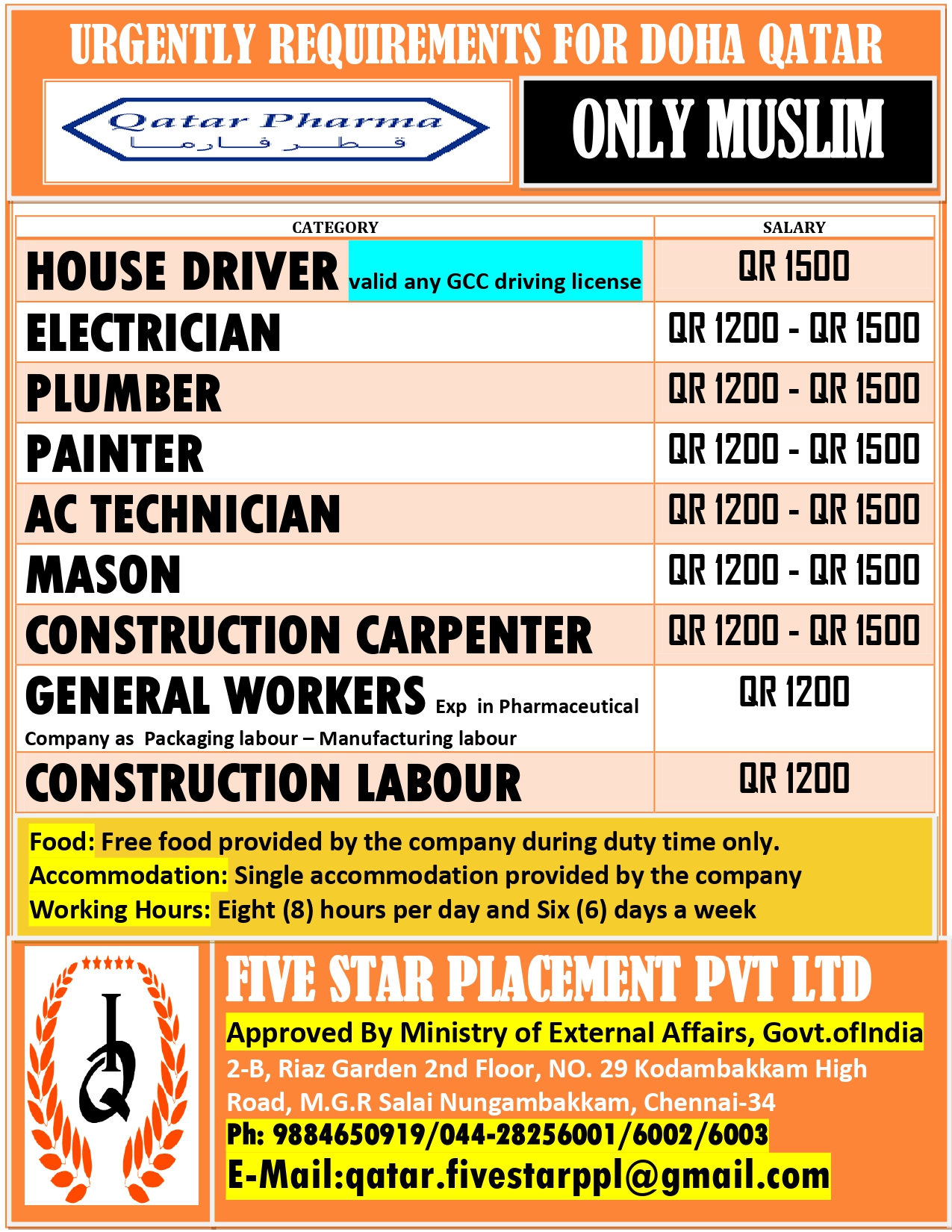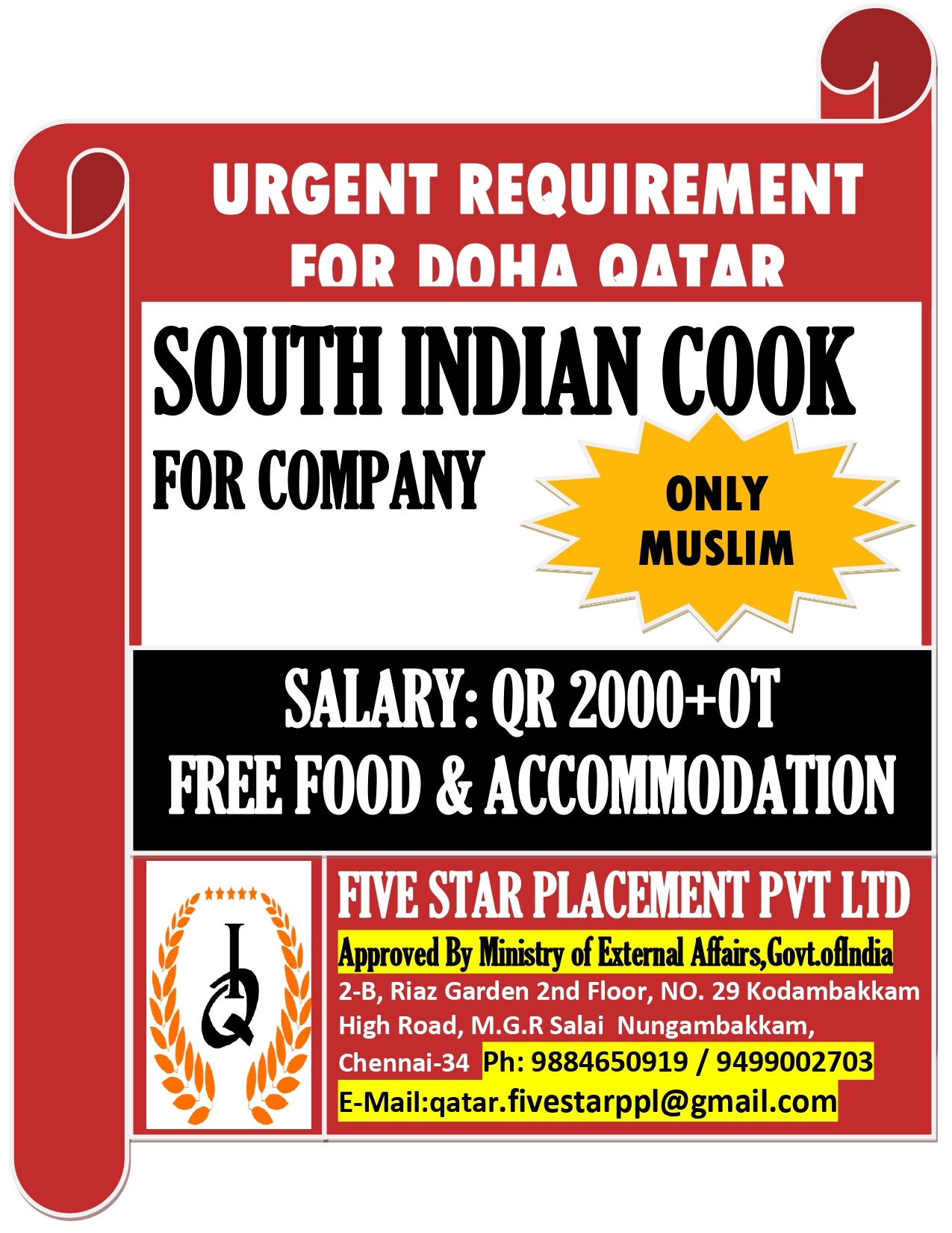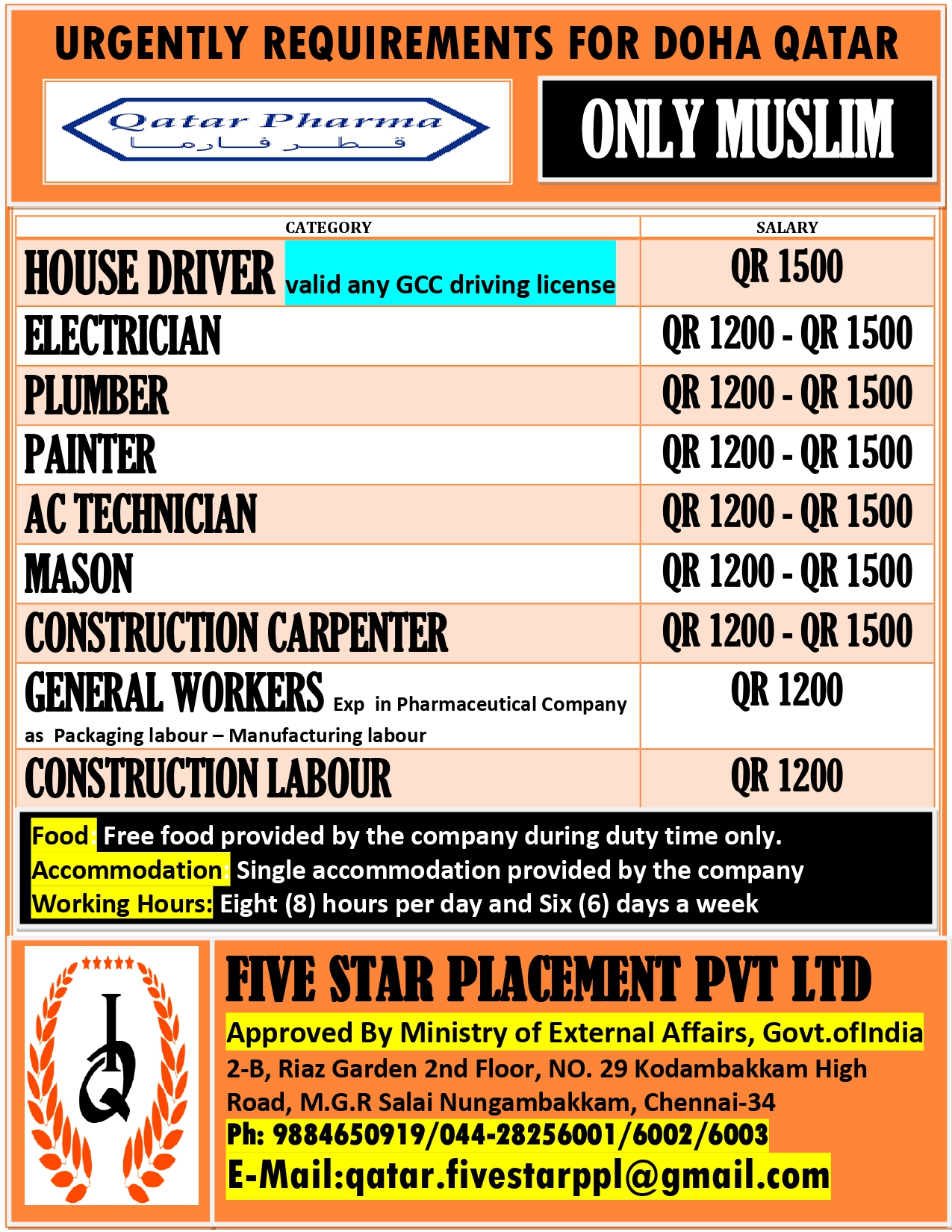 URGENT REQUIREMENT FOR DOHA QATAR Interested candidates can share your cv along with all credentials below Mail Id EMAIL:[email protected] CONTACT NO : 9884650919/044-28256001/28256002/28256003