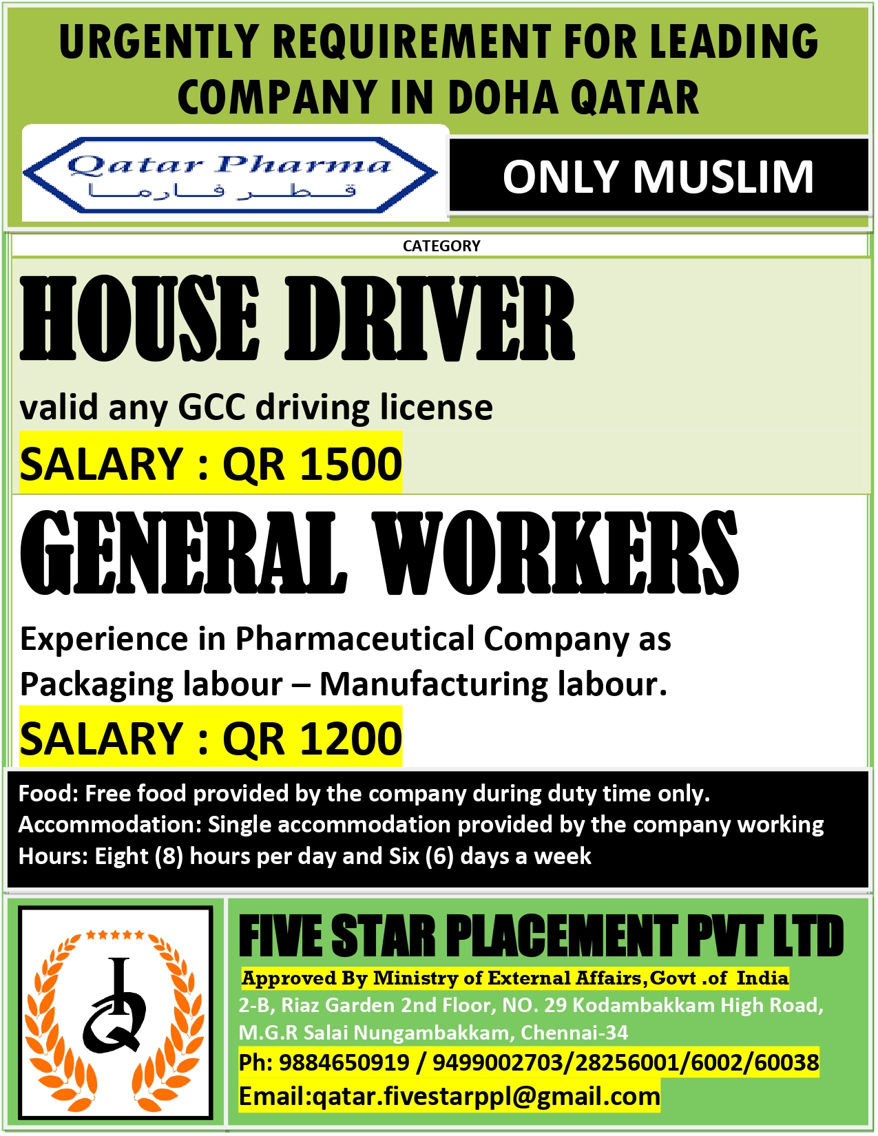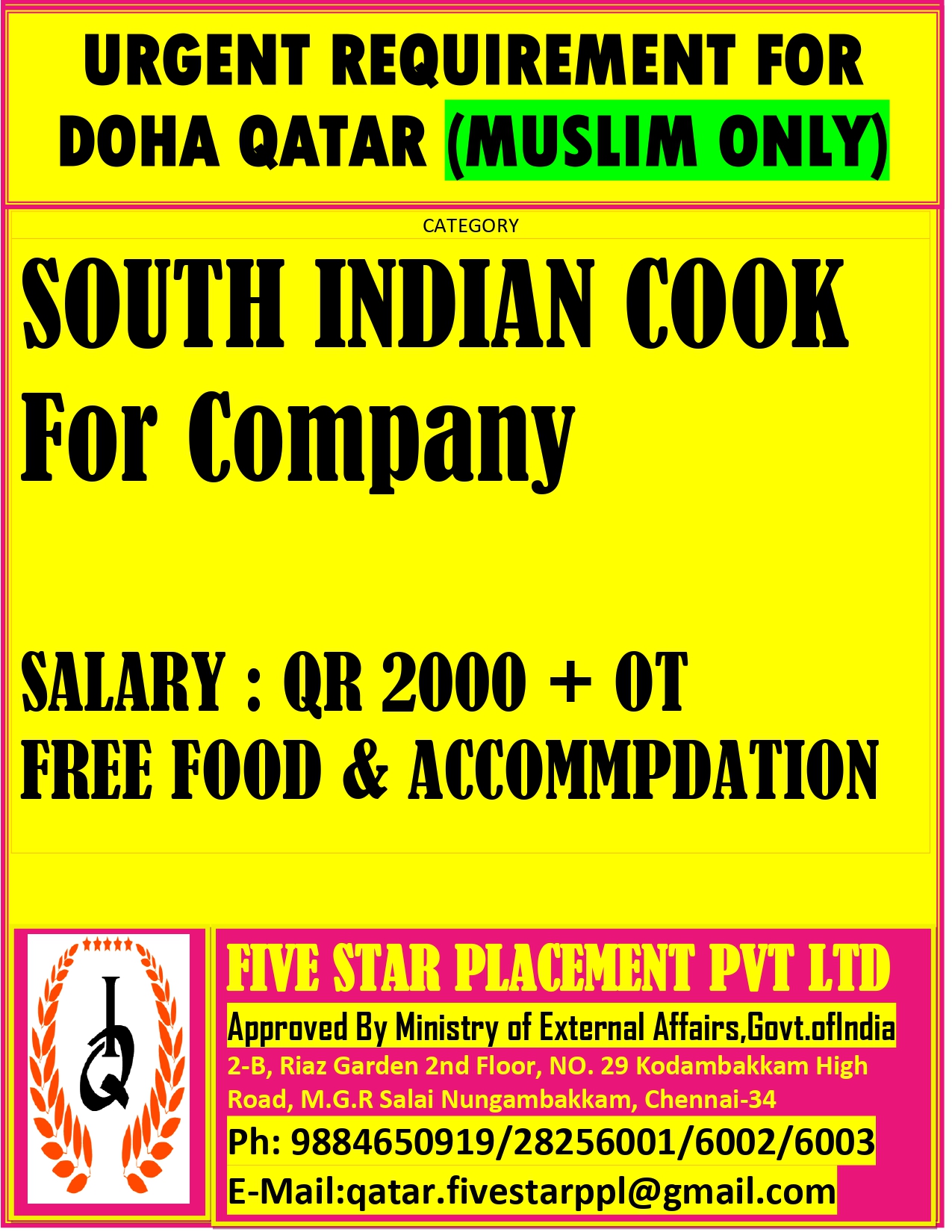URGENT REQUIREMENT FOR DOHA QATAR Interested candidates can share your cv along with all credentials below Mail Id EMAIL:[email protected] CONTACT NO : 9884650919