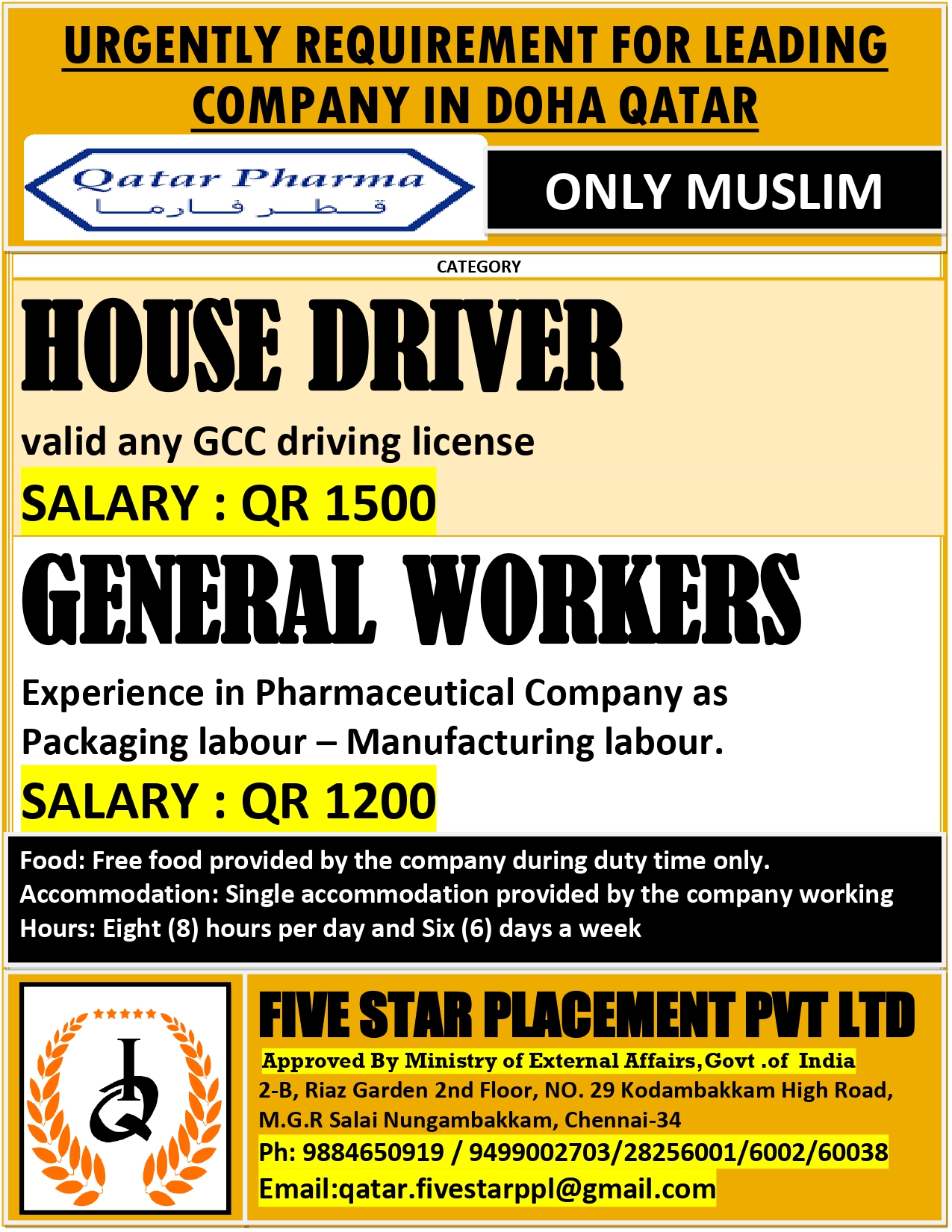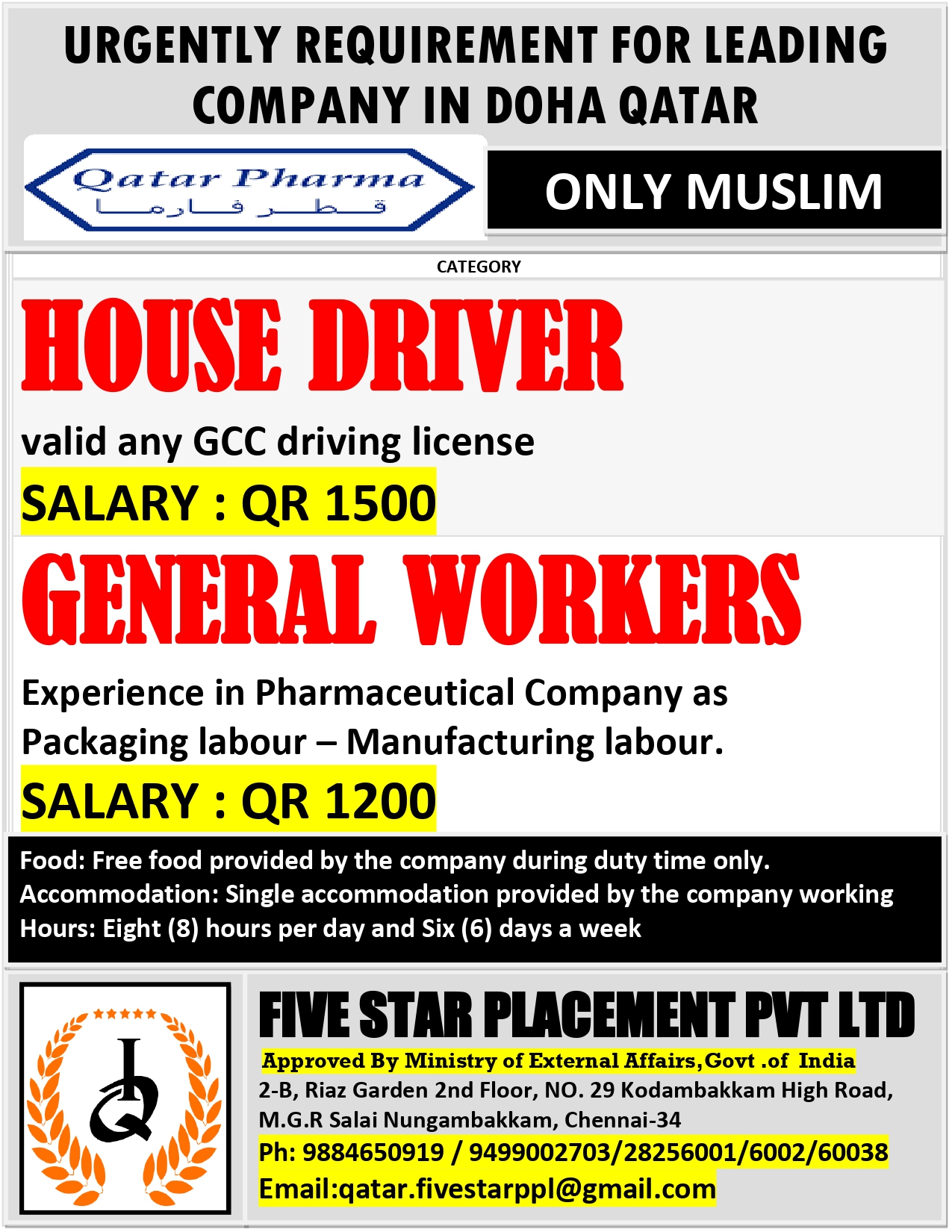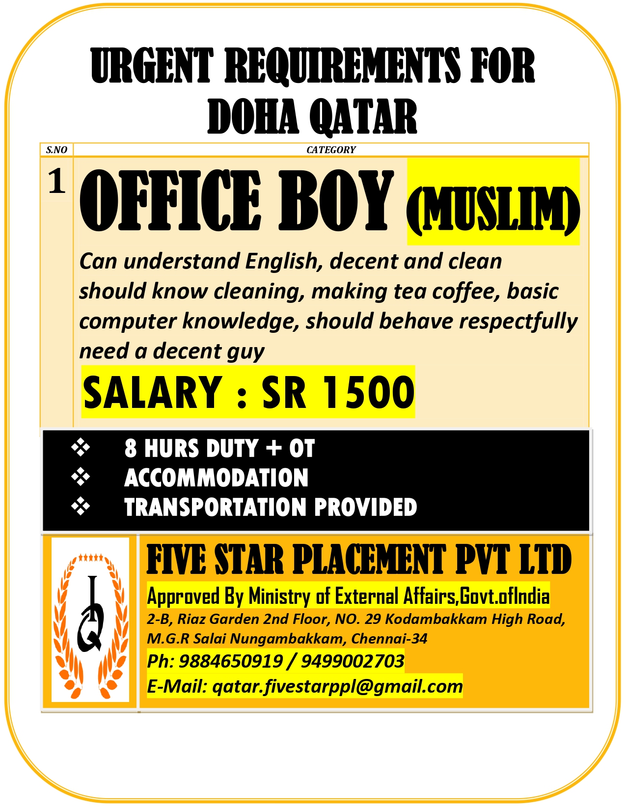 URGENT REQUIREMENT FOR DOHA QATAR Interested candidates can share your cv along with all credentials below Mail Id EMAIL:[email protected] CONTACT NO : 9884650919