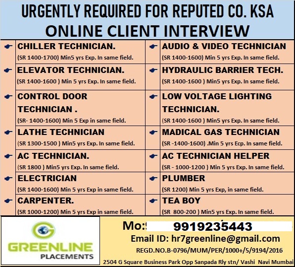 SAUDI – LONG TERM OIL & GAS PROJECT DIRECT CLIENT INTERVIEW IN CHENNAI – JAN 3rd WEEK 2026 CONTACT – 7305064086 APPLY NOW>>> [email protected] SALARY – 3500 SR to 4500…