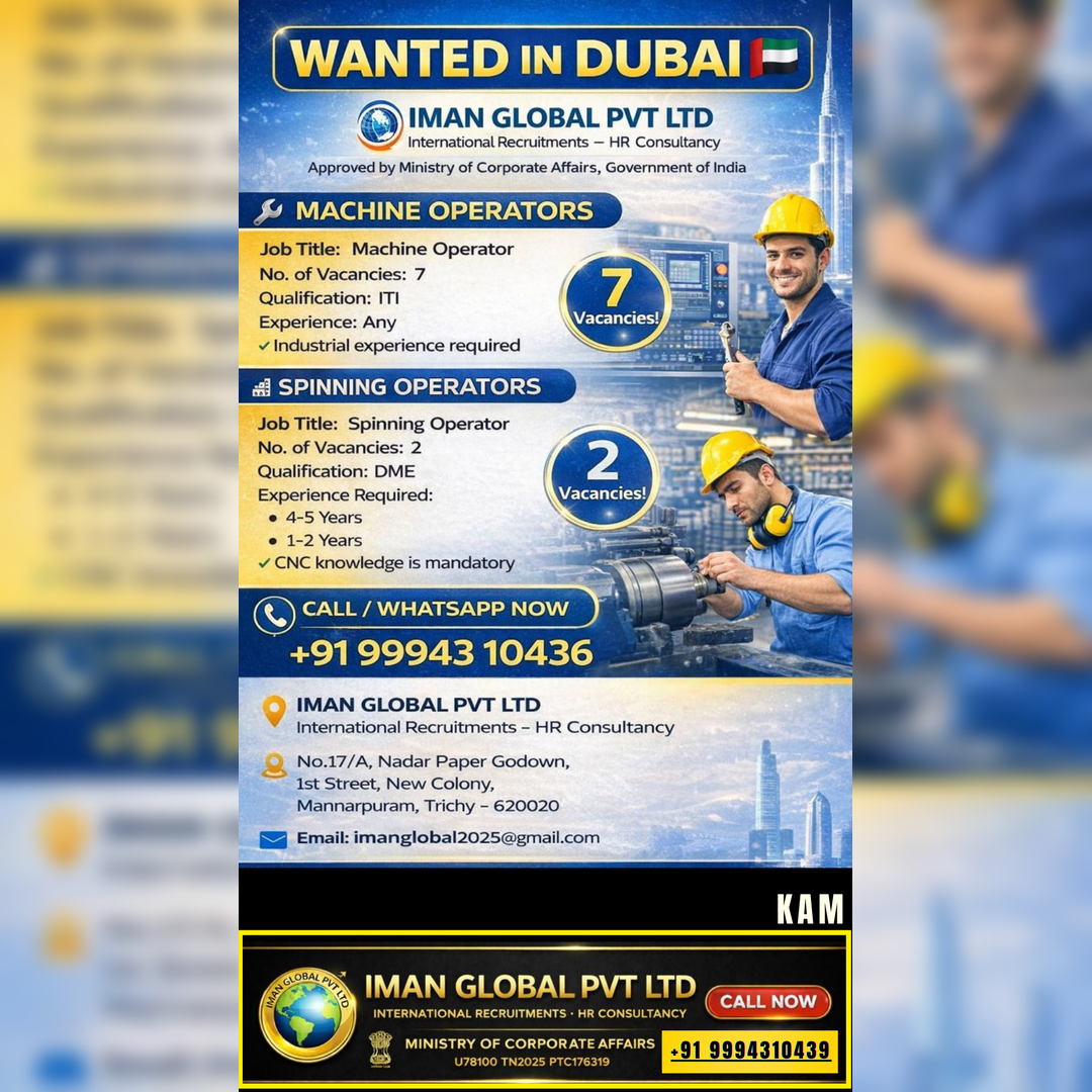 WANTED FOR A LEADING MANUFACTURING COMPANY (DUBAI) DIRECT CLIENT INTERVIEW ON 2 FEB – TRICHY For More Updates: Contact Number 7288076747 / 9566295690 Please join our WhatsApp Group: https://chat.whatsapp.com/C75DgD8Smkq5PQH0zXi00y Please…