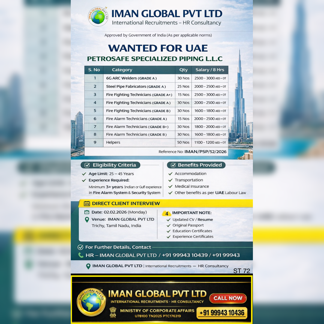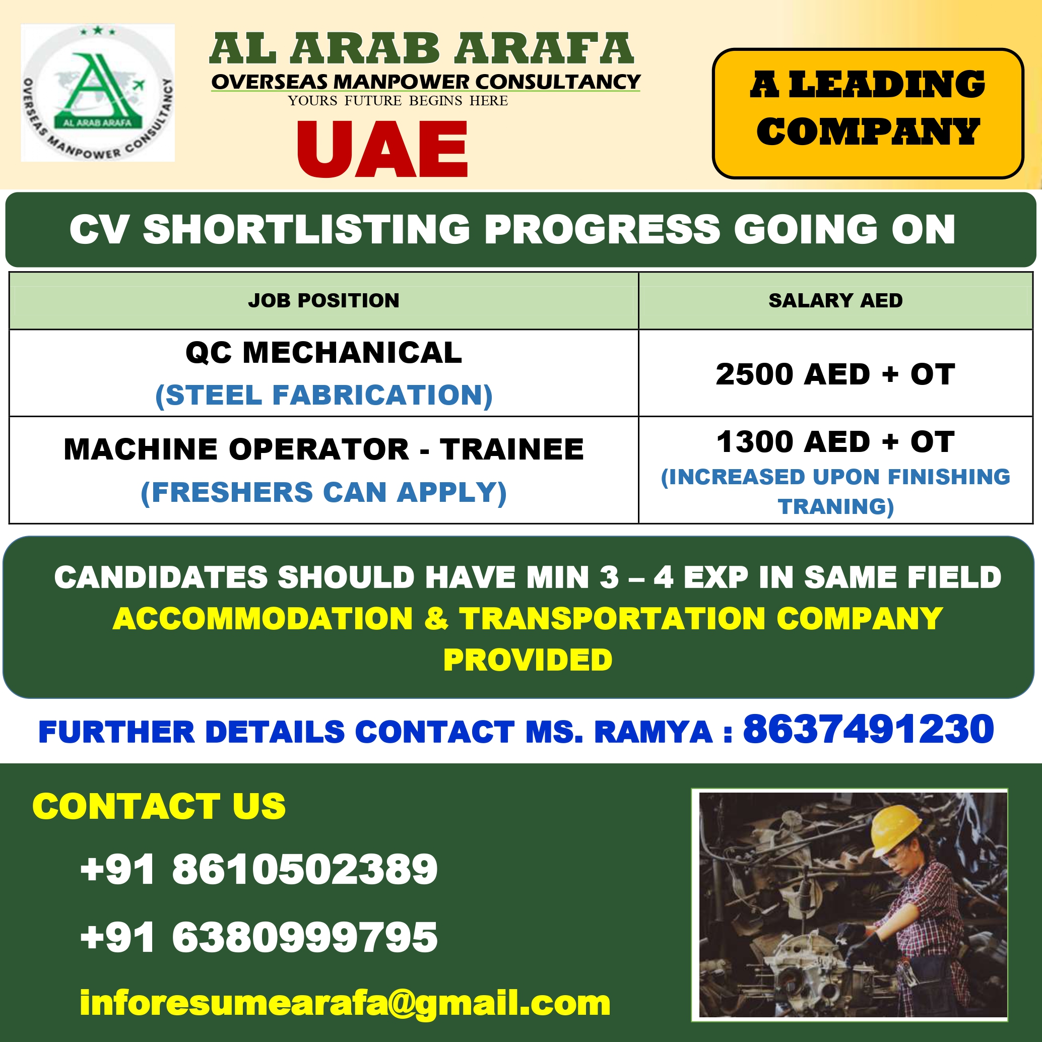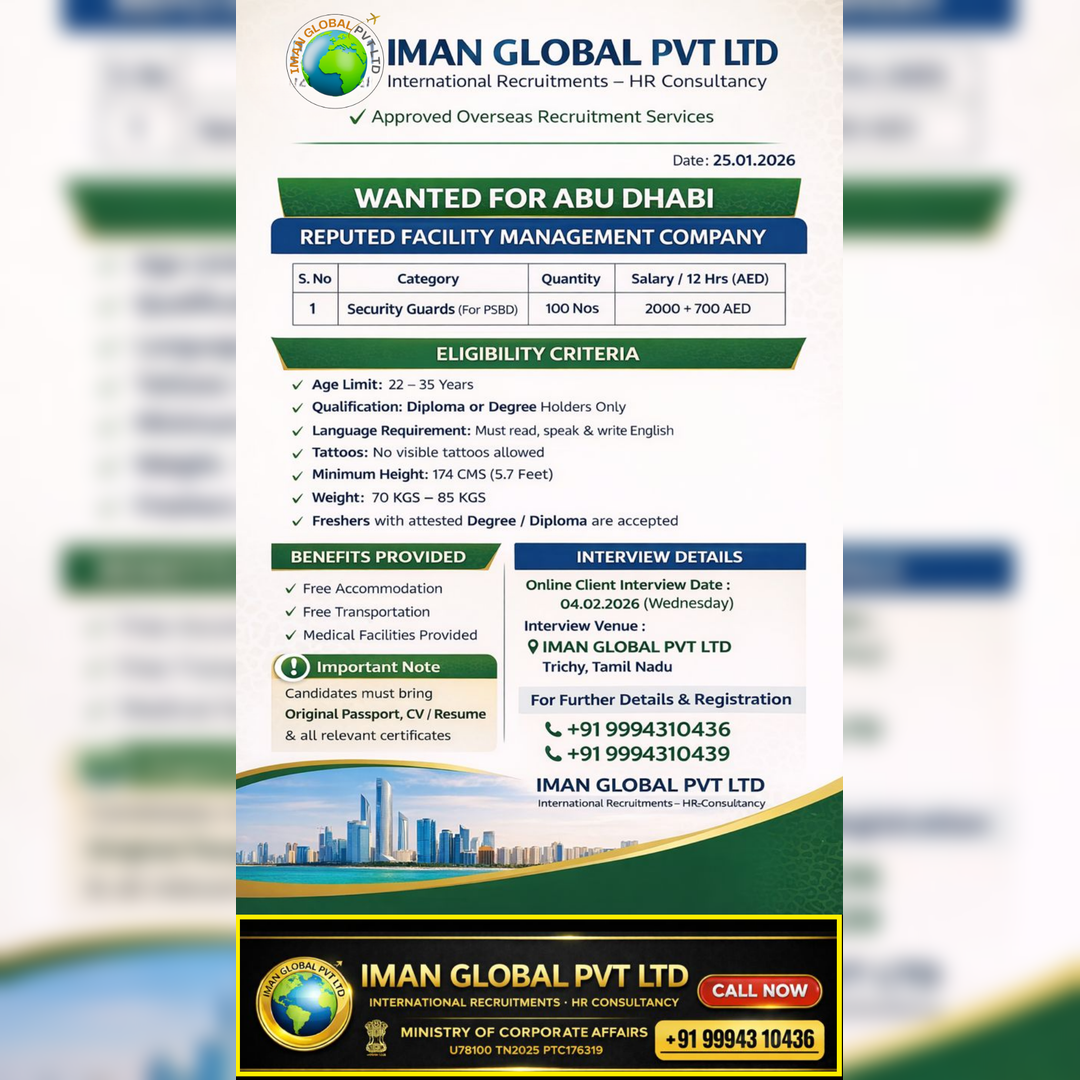 FREE REQUIREMENTS FOR ABUDHABI Interested candidates can share your cv along with all credentials below Mail IdEMAIL:[email protected] NO : 9884650919/044-28256001/28256002/28256003