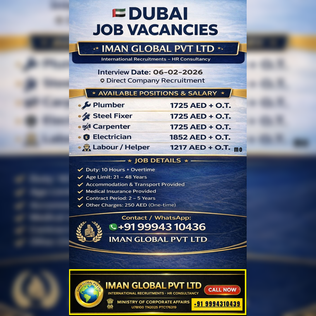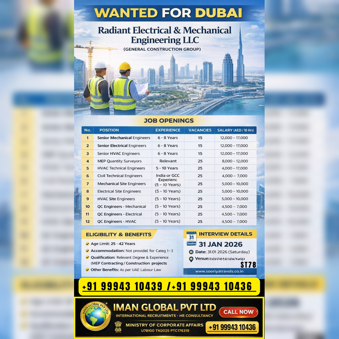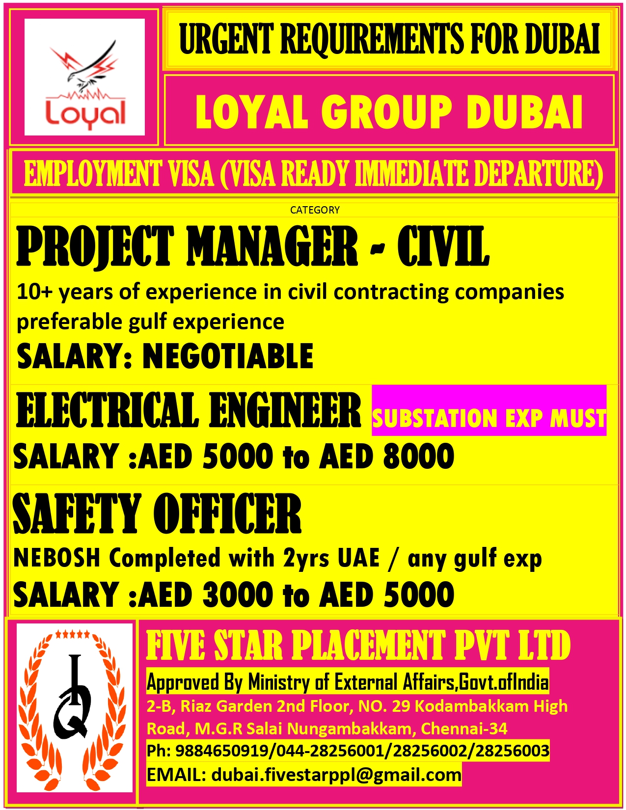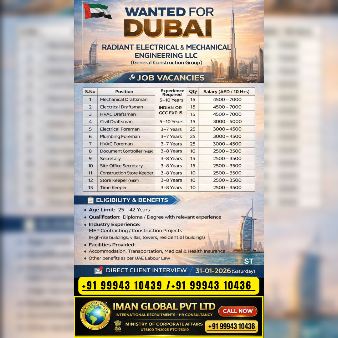 URGENT REQUIREMENTS FOR DUBAI Interested candidates can share your cv along with all credentials below Mail IdEMAIL:[email protected] NO : 9884650919/044-28256001/28256002/28256003
