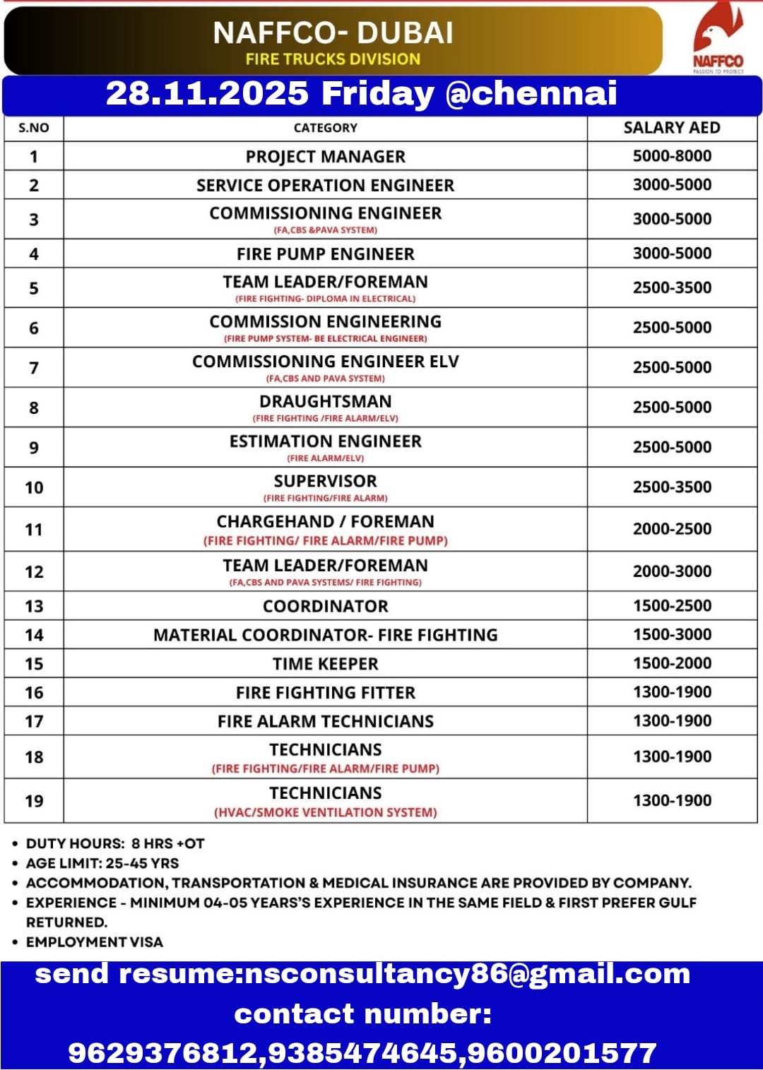 candidate experience minimum 7 yrs send resume- [email protected] contact number:9629376812,9385474645,9600201577