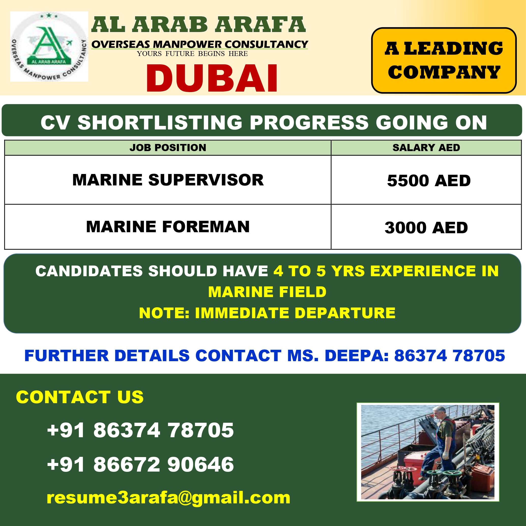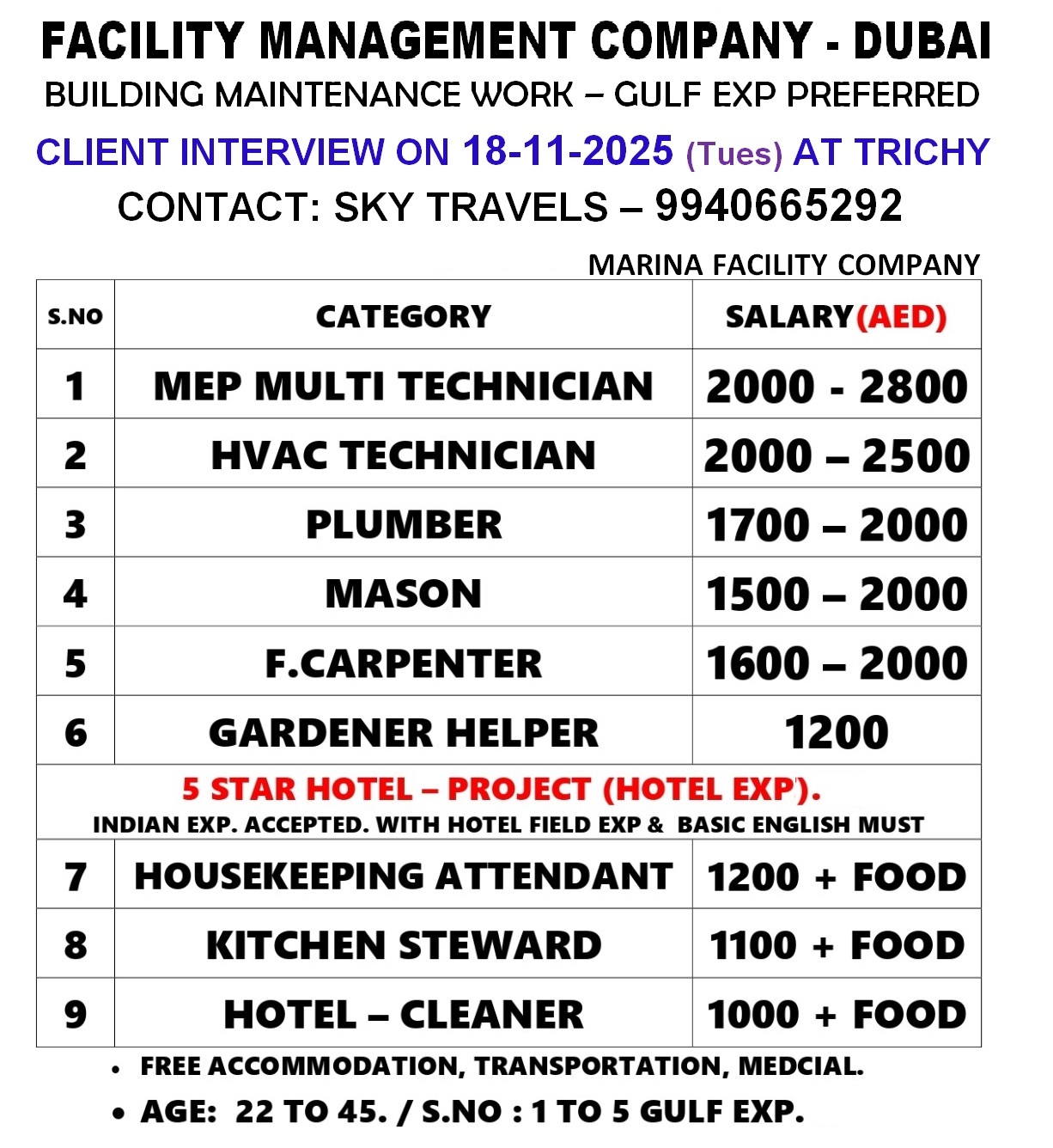 DUBAI – LEADING CONSTRUCTION PROJECT DIRECT CLIENT INTERVIEW IN CHENNAI @ 23 NOV 2025 IMMEDIATE DEPARTURE ECR / ECNR Passport eligible – min 3-5 years gulf experience must CONTACT –…