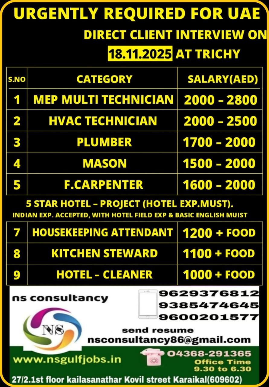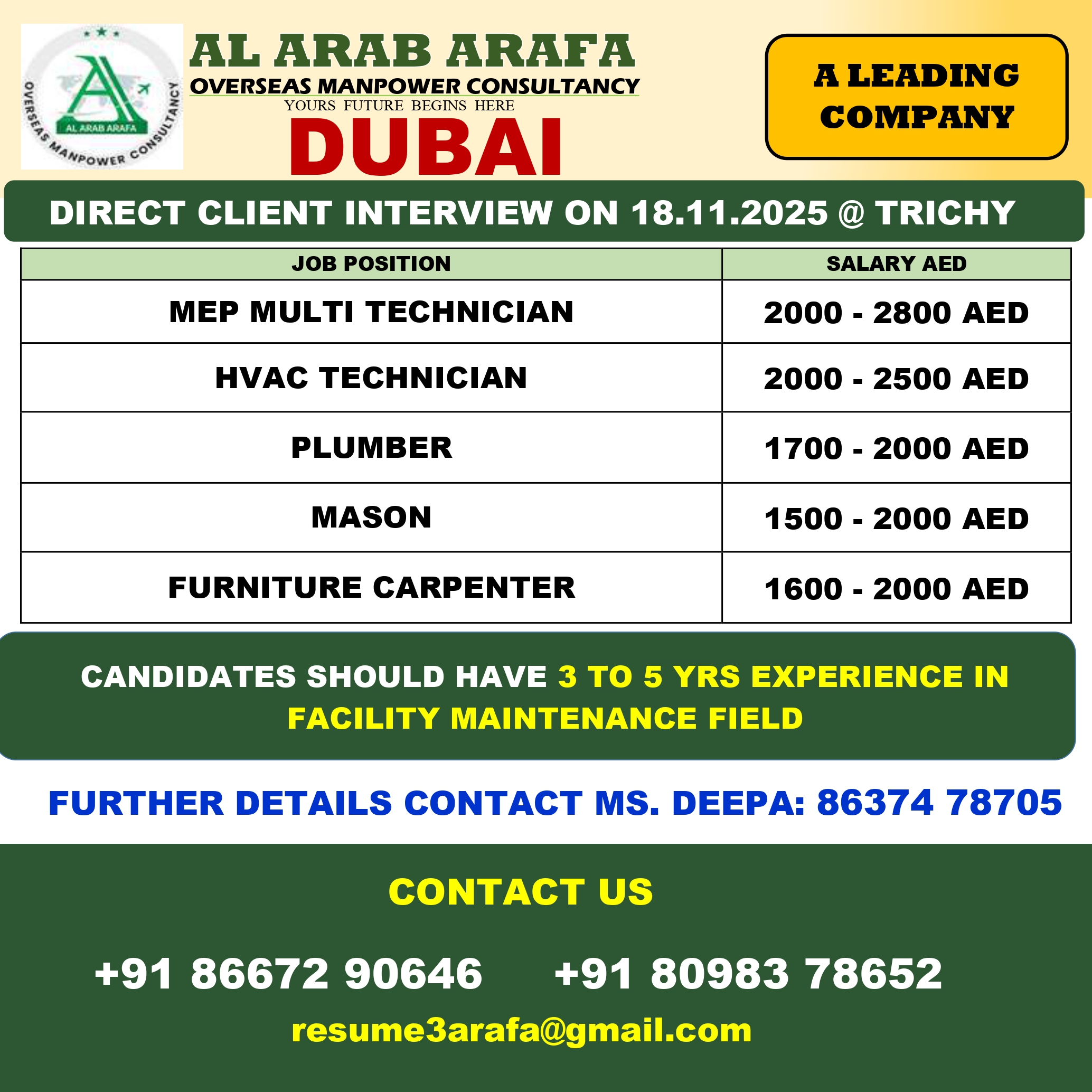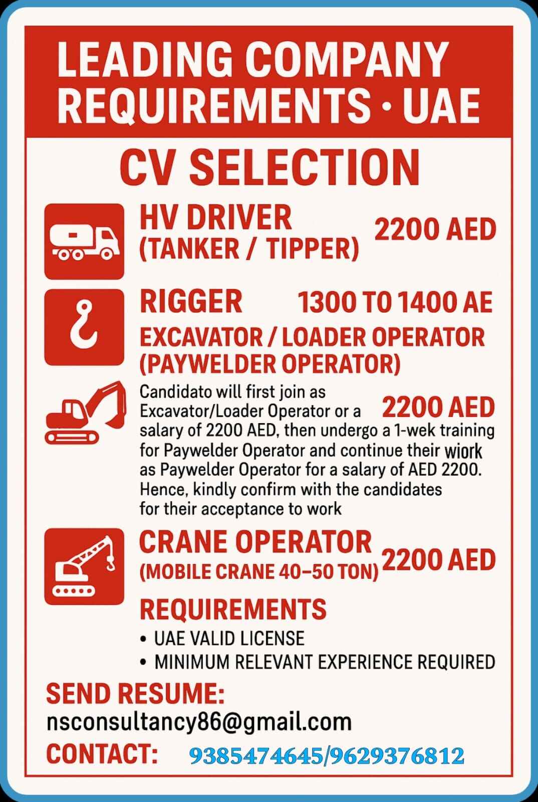 GREETINGS FROM RK GULF TRAVELS, BHILAI. HIRING FOR A LEADING READYMIX & PRECAST CO. – DUBAI (UAE) CLIENT WALKING INTERVIEW ON NOVEMBER-2025 IN RAIPUR. CANDIDATES SHOULD HAVE MINIMUM 4-5 YEARS…