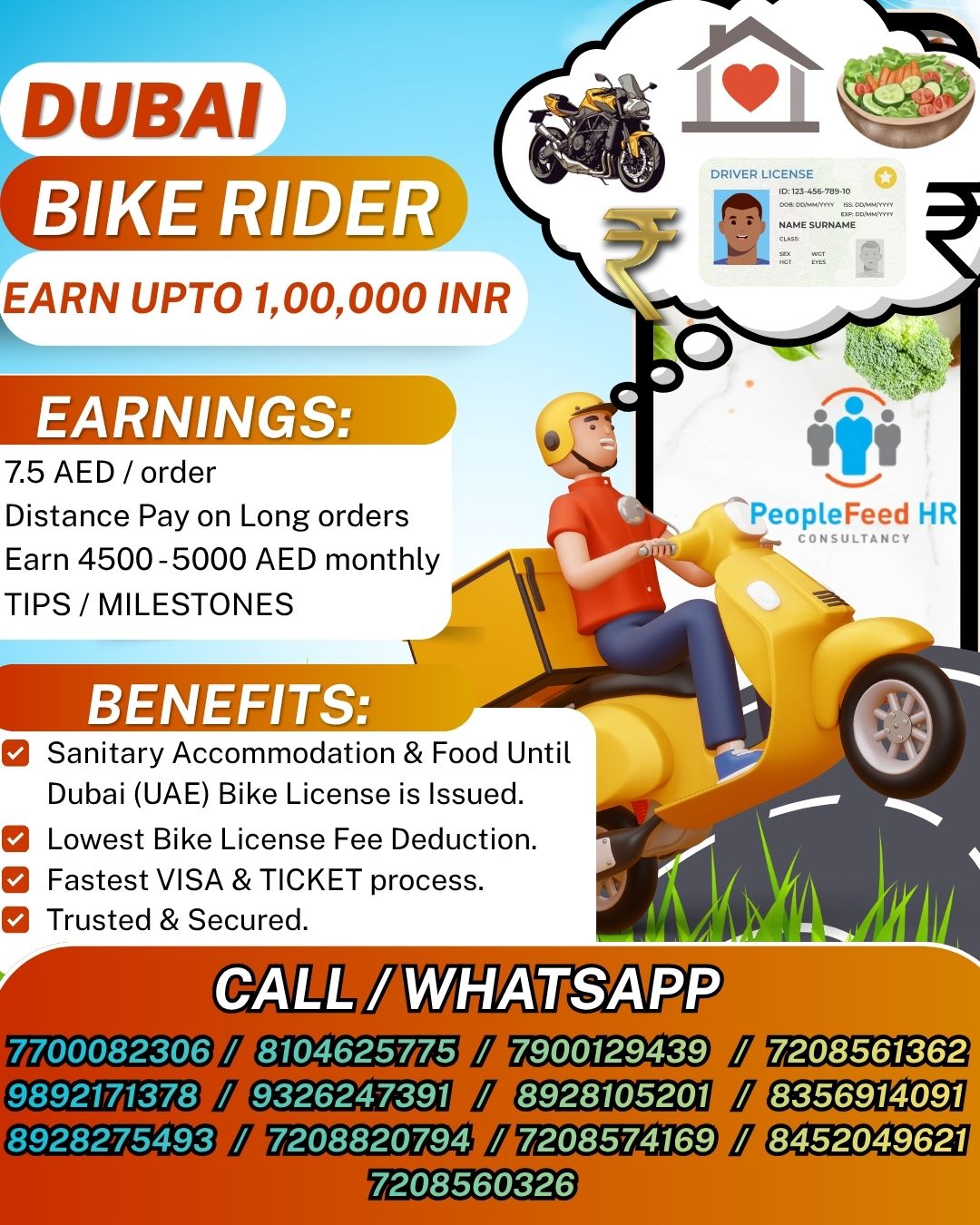 Greetings From PeopleFeed HR Private LimitedApproved From Ministry of External Affairs & Govt. Of IndiaLIC – B-1552/MUM/COM/1000+/9911/2021 URGENT REQUIREMENT FOR BIKE RIDERS IN DUBAI (UAE) :: TALABAT / KEETA ::…