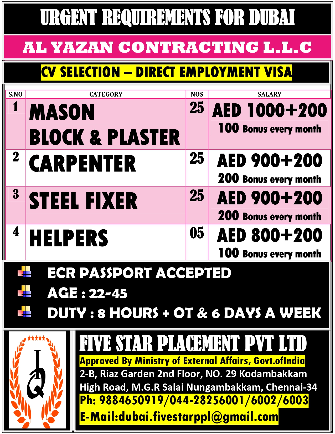 UAE – STORM WATER PROJECT ONLINE INTERVIEW ( CV SHORTLISTING PROCESS IN CHENNAI ) CONTACT – 7305461187 APPLY NOW>>> [email protected] SALARY 2,500 – 7500 AED + OT with FREE ACCOMMODATION,…