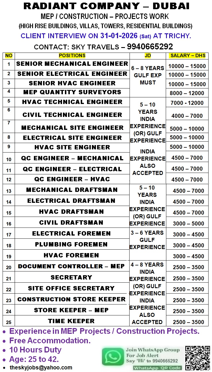⚠️ Disclaimer: gccwalkin.com is not a recruitment agency. We do not charge any fees for job information. We only share job details collected from official sources such as company websites, newspapers, and social media. Job seekers are advised to verify the authenticity of the job and company before applying.
