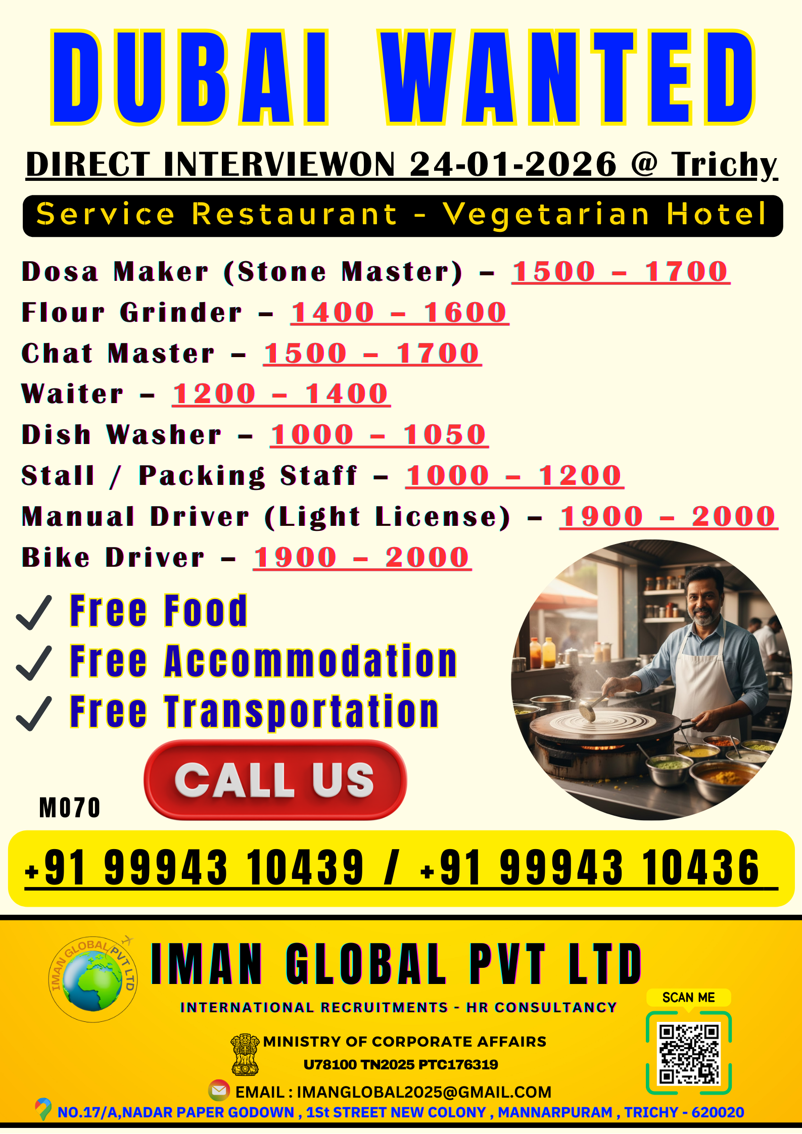 For more details: please call: 9620992294-8277795307-9845300838 Please like & join us: https://www.facebook.com/welcometosaad https://www.instagram.com/saddconsultancy_jobs/ https://t.me/saadgulfjobshttps://www.linkedin.com/in/abroadjobshttps://twitter.com/saadgulfjobs