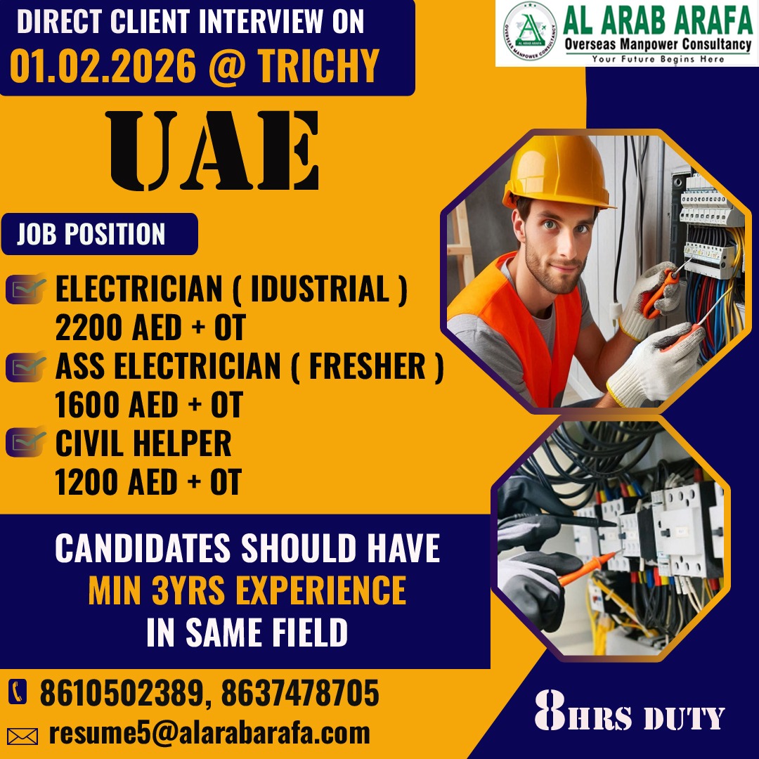 GREETINGS FROM RK GULF TRAVELS, BHILAI. HIRING FOR A LEADING COMPANY – DUBAI (UAE) DIRECT CV SELECTION WITH ZOOM MEETING INTERVIEW ON FEBRUARY-2026. CANDIDATES SHOULD HAVE MINIMUM 5-6 YEARS EXPERIENCE…