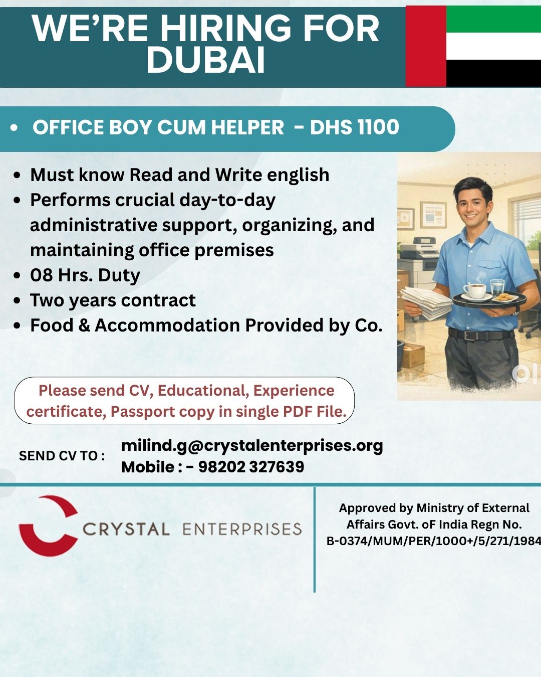 OFFICE BOY CUM HELPER – DHS 1100