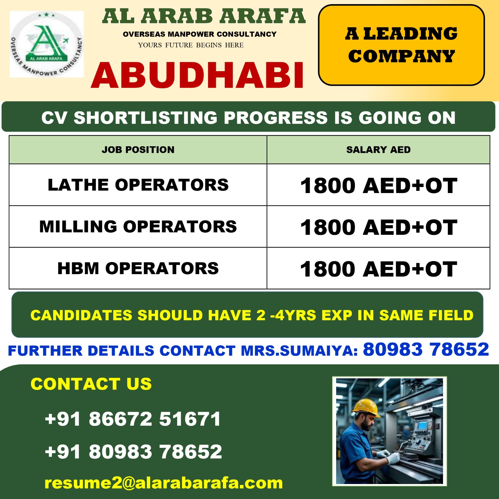 FURTHER DETAILS CONTACT MRS.SUMAIYA 80983 78652 / 86672 51671