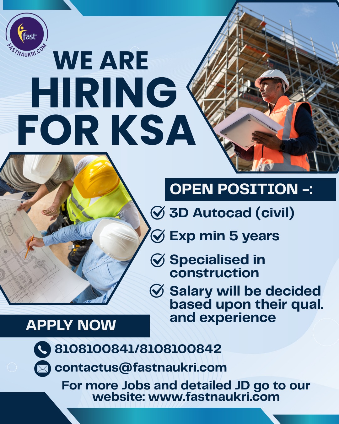 #WeAreHiring 🚀 #HiringForKSA 🇸🇦 #CivilEngineer 🏗️ #AutoCAD3D 📐 #CivilJobs #ConstructionJobs 👷♂️ #GulfJobs 🌍 #SaudiJobs #EngineeringCareers 💼 #Fastnaukri #JobOpening 📢 #InternationalJobs ✈️ #ApplyNow 🔔 #CareerGrowth 📈#HiringNow 📢 #KSAJobs 🇸🇦 #CivilAutoCAD #AutoCADEngineer 📐 #CivilEngineering 🏗️ #ConstructionCareers 👷 #SaudiArabiaJobs #GulfHiring 🌍 #OverseasJobs ✈️ #EngineeringJobs #Fastnaukri #ApplyToday 🔔#UrgentHiring 🚨 #KSA 🇸🇦 #AutoCADCivil 📐 #CivilEngineer 🏗️ #ConstructionJobs #SaudiProjects #GulfRecruitment 🌍 #OverseasJobs ✈️ #Fastnaukri #ApplyNow#SaudiJobs 🇸🇦 #CivilEngineerJobs 🏗️ #AutoCAD3D 📐 #GulfCareers 🌍 #InternationalPlacement ✈️ #EngineeringOpportunities #ConstructionIndustry 👷 #Fastnaukri #CareerAbroad 🚀#KSAHiring 🇸🇦 #AutoCADJobs 📐 #CivilJobs 🏗️ #GulfOpportunity 🌍 #SaudiCareers #EngineeringLife 👷♂️ #JobAlert 🚨 #Fastnaukri #ApplyNow ✈️