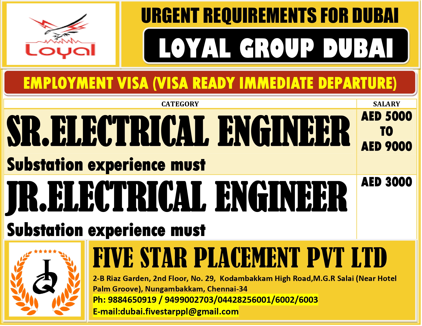 URGENT REQUIREMENT FOR DUBAI