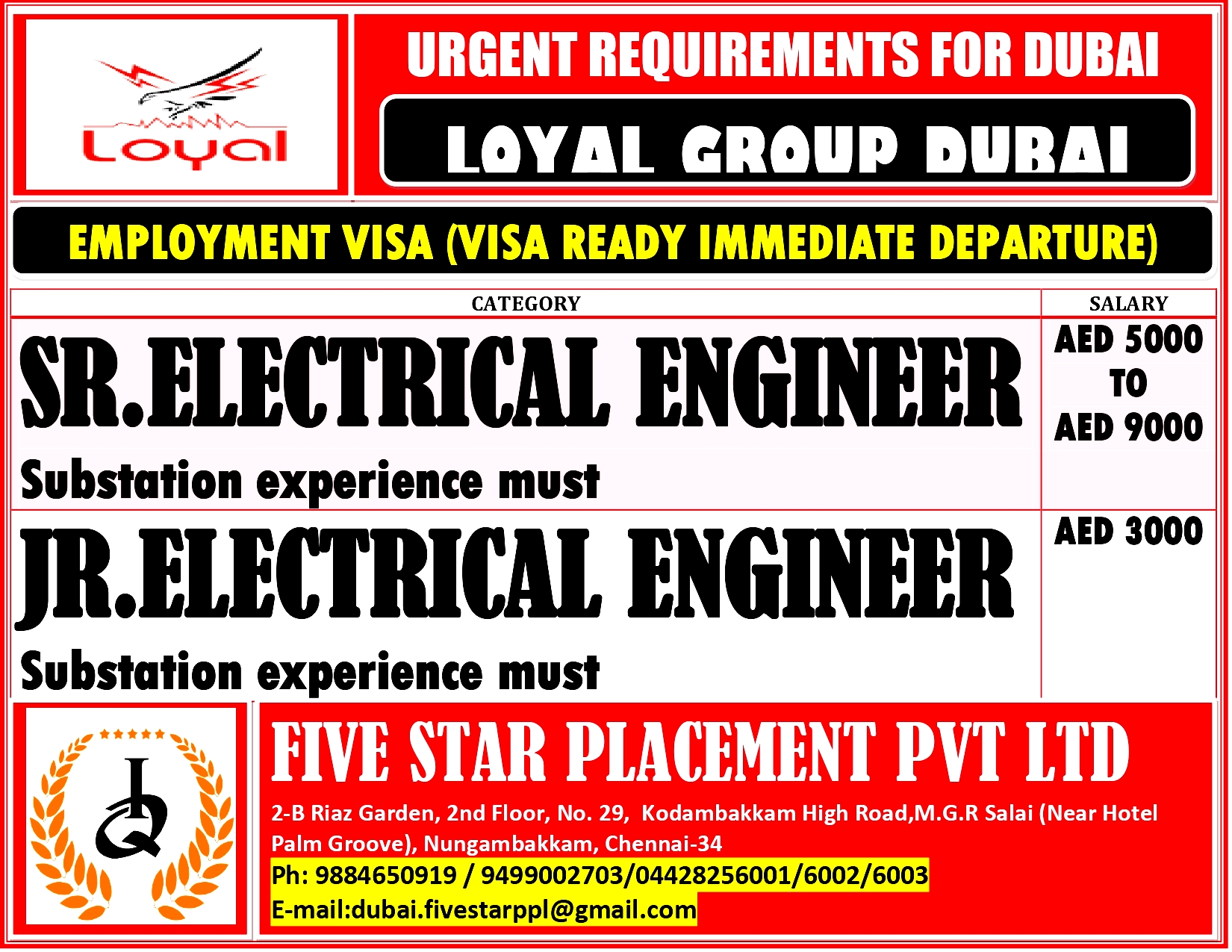 URGENT REQUIREMENT FOR DUBAI