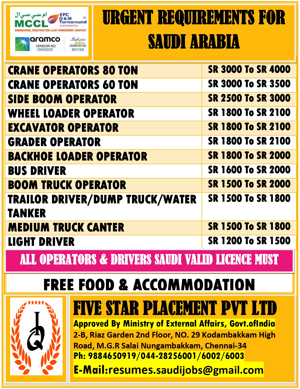 URGENT REQUIREMENT FOR SAUDI ARABIA