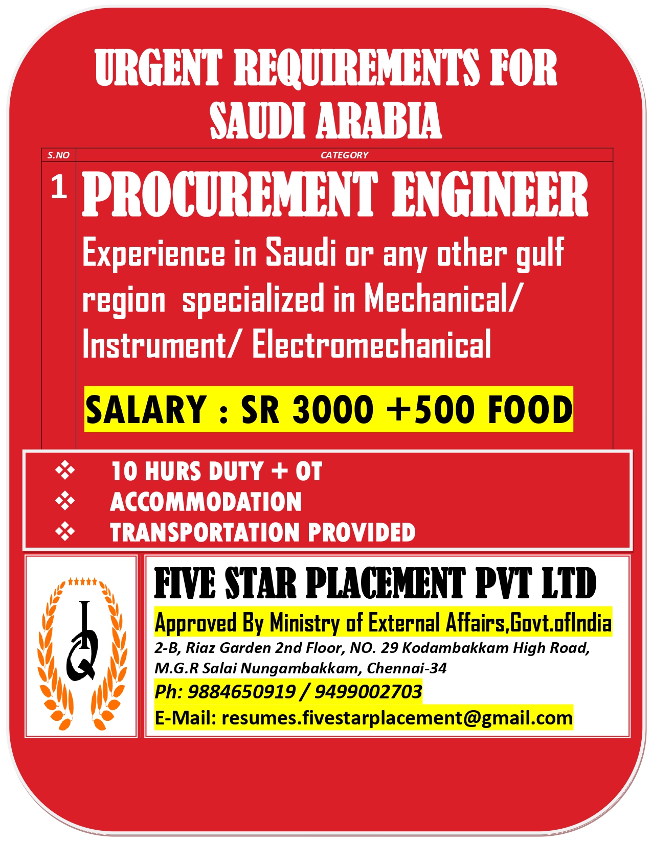 URGENT REQUIREMENT FOR SAUDI ARABIA