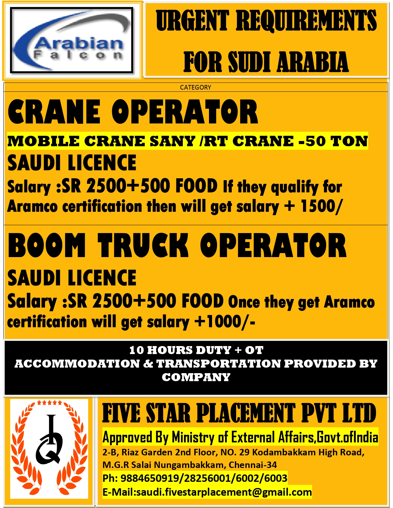 URGENT REQUIREMENT FOR SAUDI ARABIA