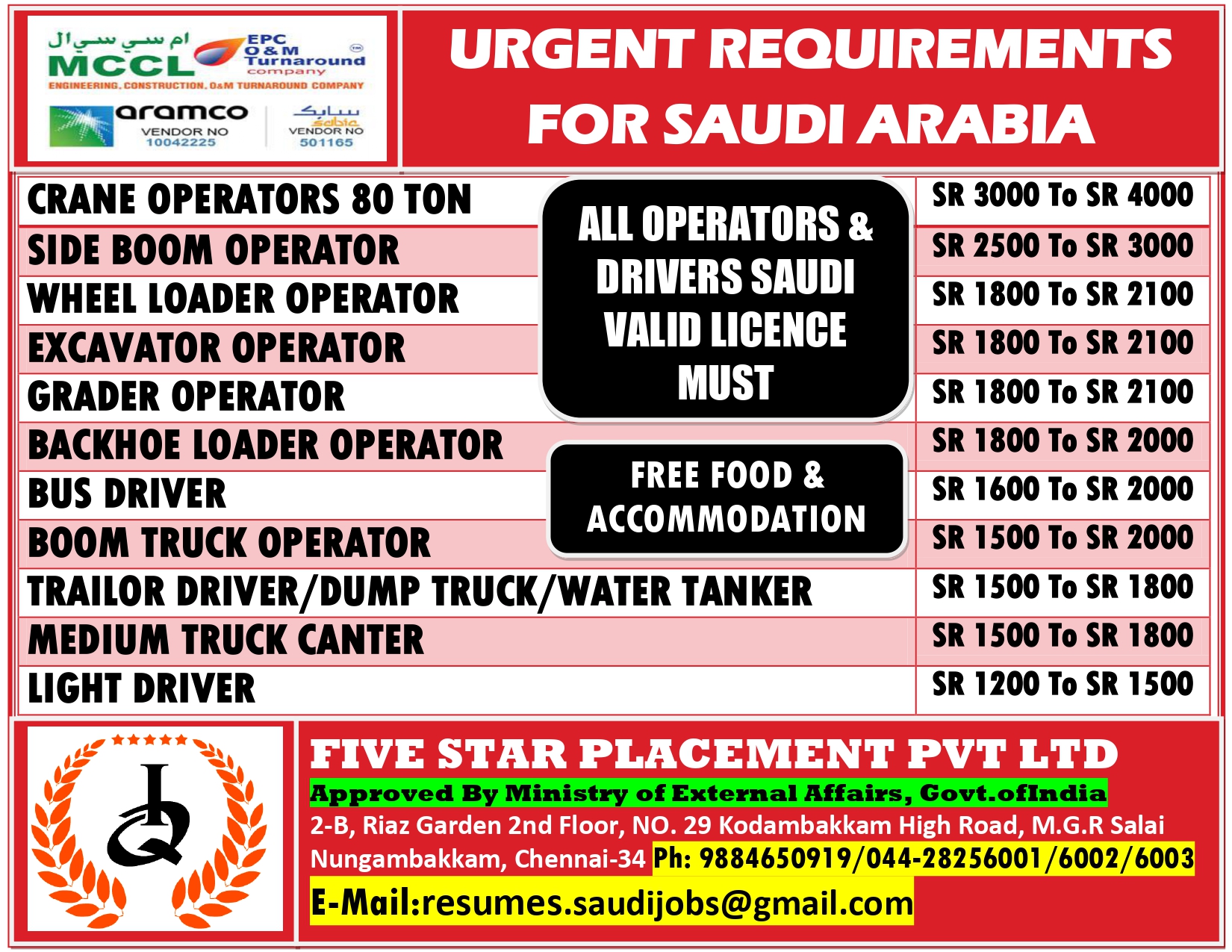 URGENT REQUIREMENT FOR SAUDI ARABIA