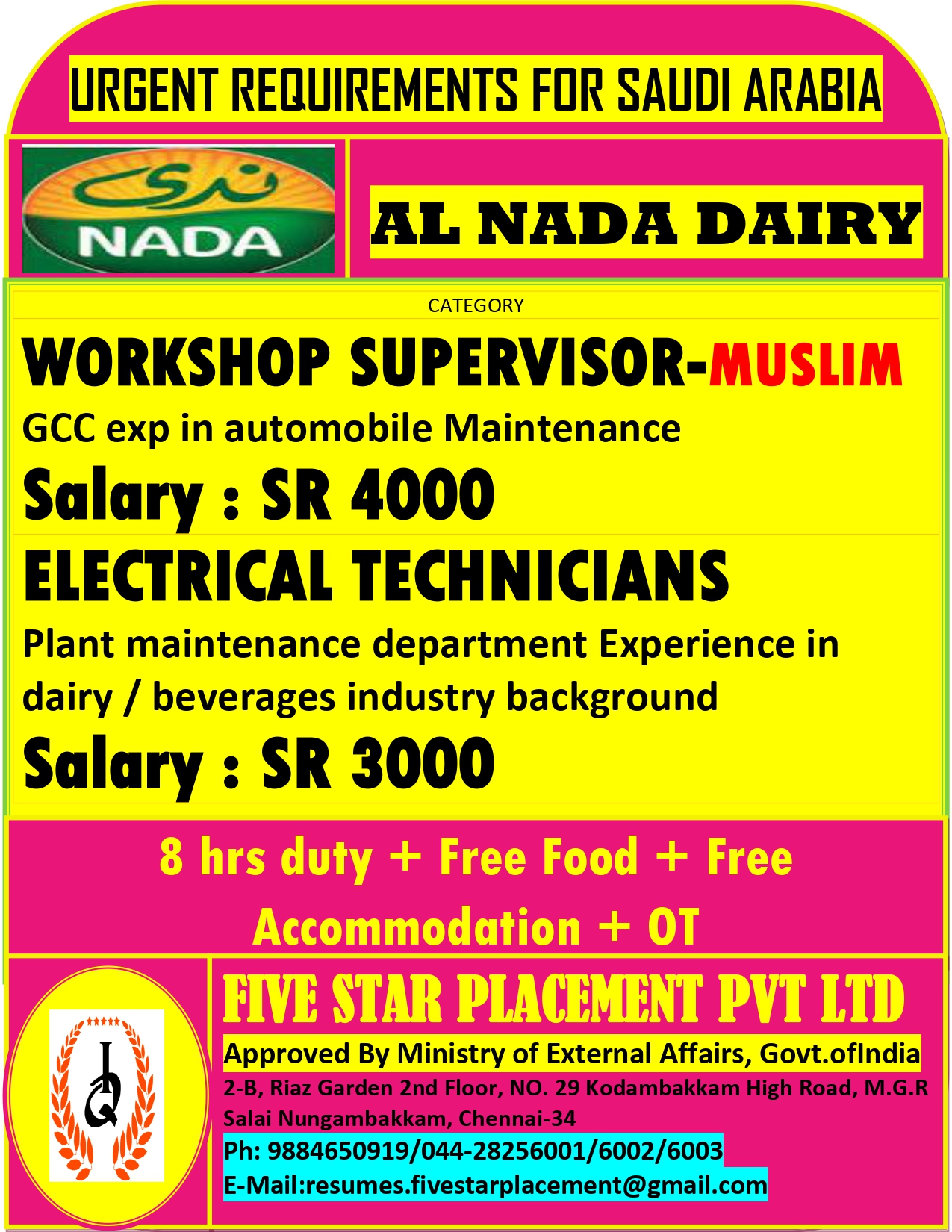 URGENT REQUIREMENT FOR DUBAI Interested candidates can share your cv along with all credentials below Mail Id EMAIL:[email protected] CONTACT NO : 9884650919/044-28256001/28256002/28256003