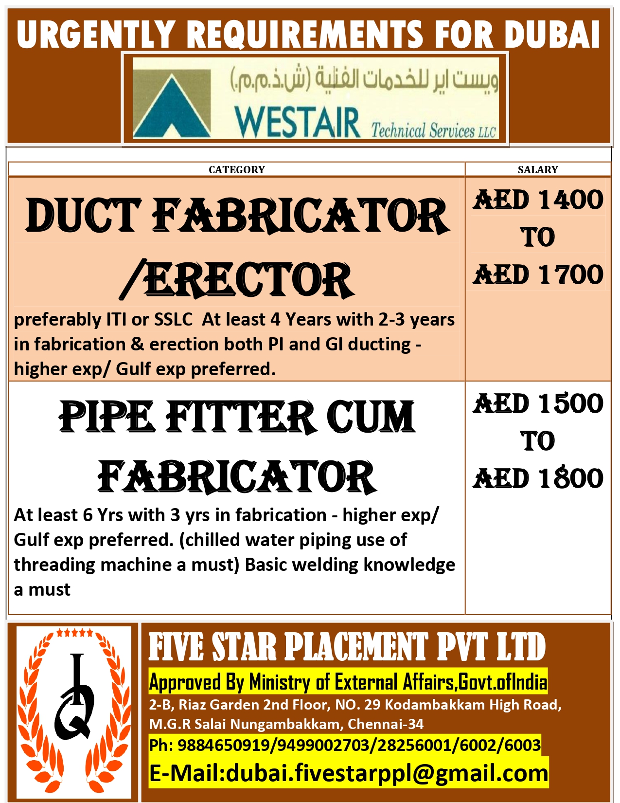 URGENT REQUIREMENT FOR DUBAI Interested candidates can share your cv along with all credentials below Mail Id EMAIL:[email protected] CONTACT NO : 9884650919/044-28256001/28256002/28256003