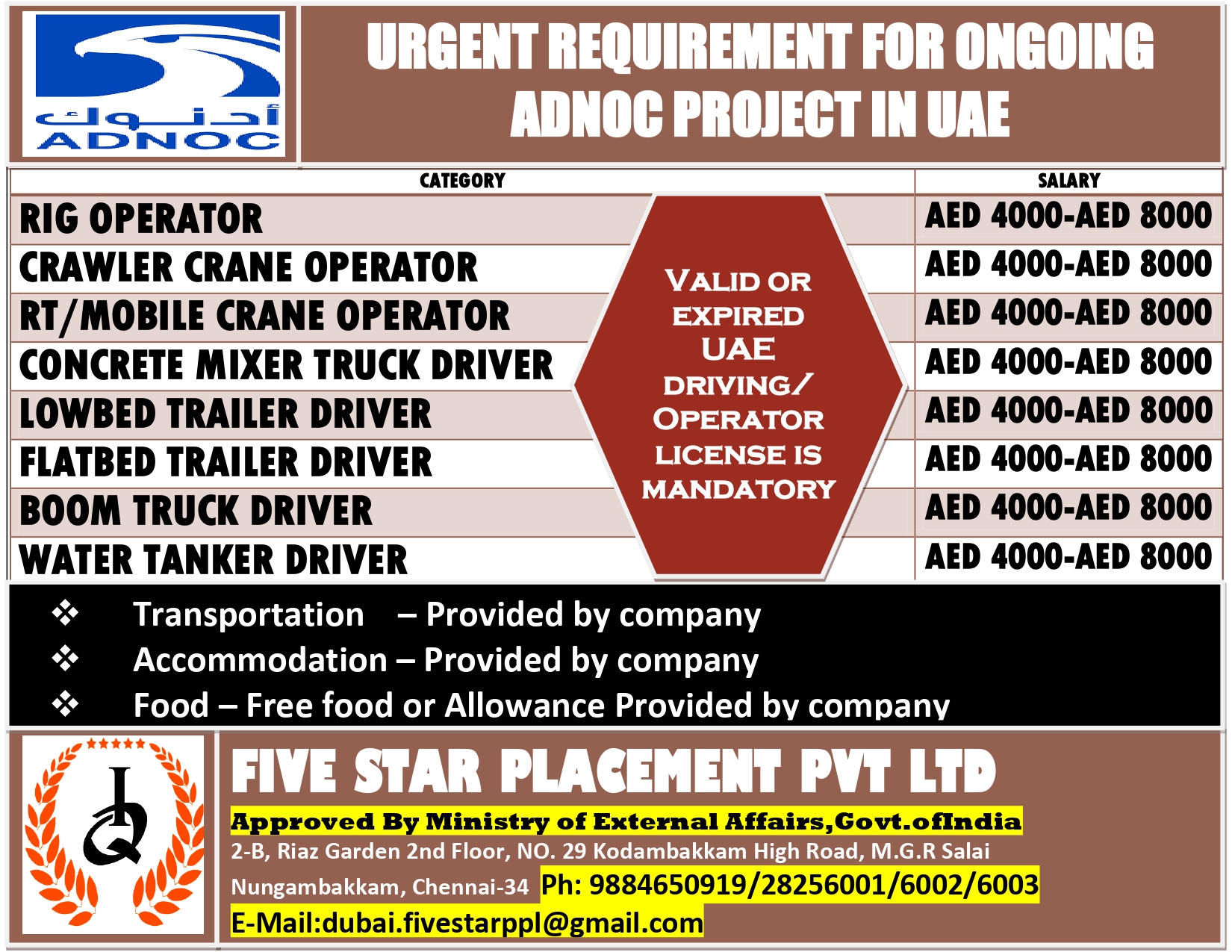 URGENT REQUIREMENT FOR ONGOING ADNOC PROJECT IN UAE